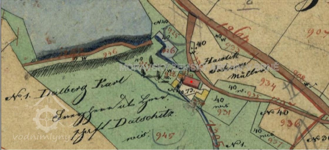 V roce 1891 tu mlynařil František Vonka, poté mlýn koupil majitel dačického statku Bedřich Dalberg. Ten v roce 1893 mlýn prodal Janu Zabloudilovi.