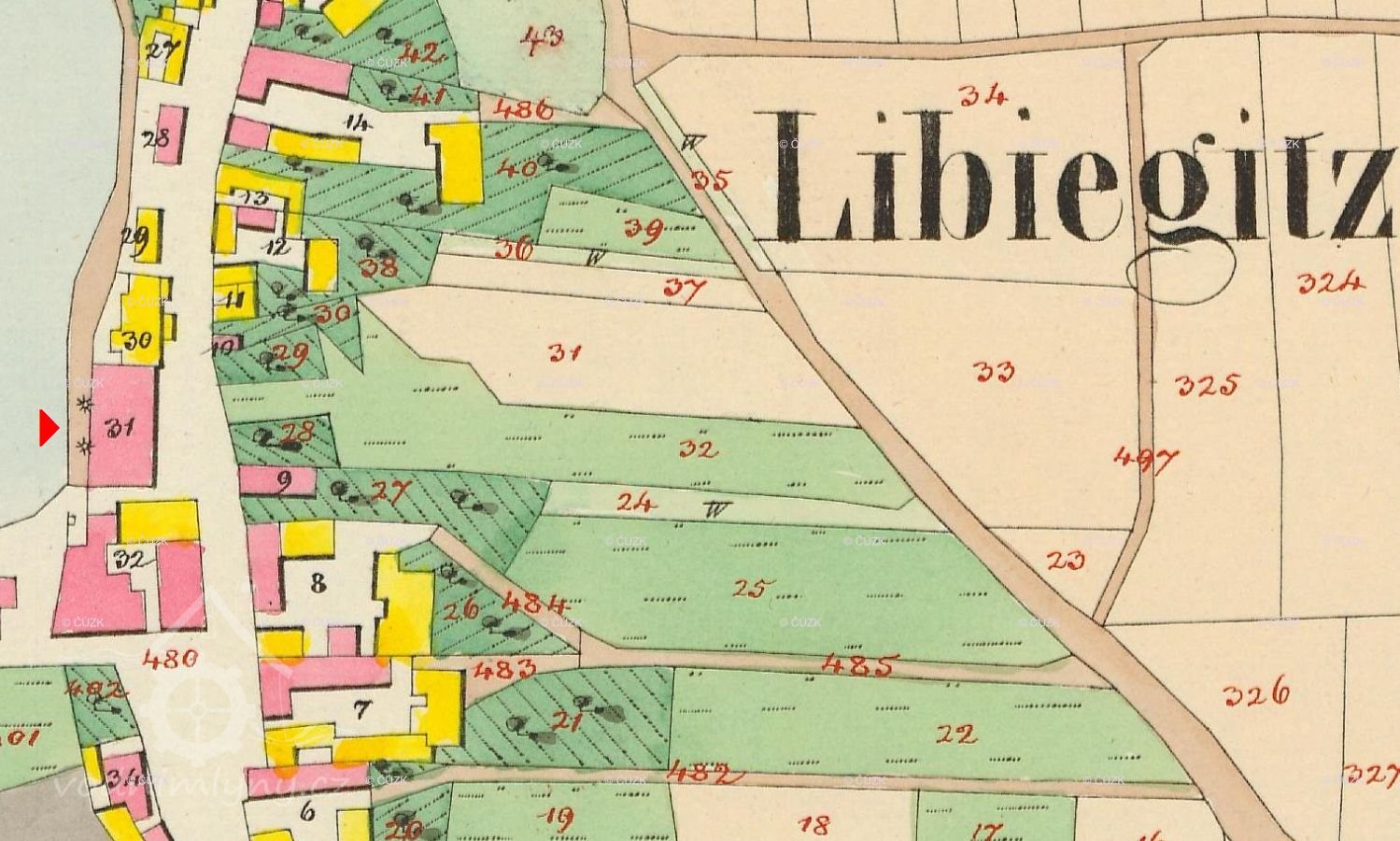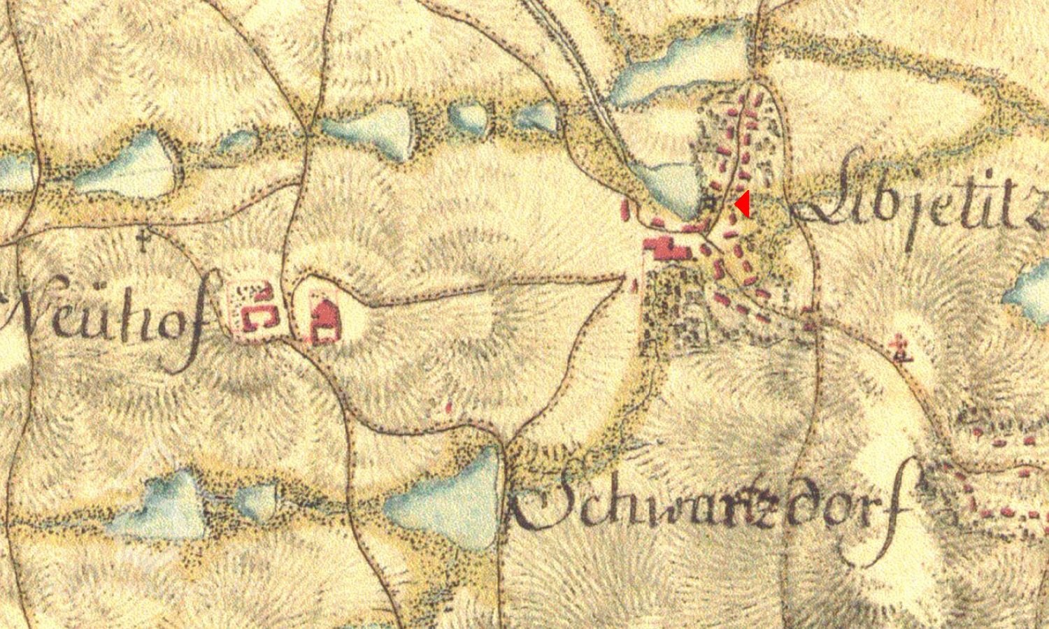 Uprostřed obce. pod hrází Náveskýho rybníka