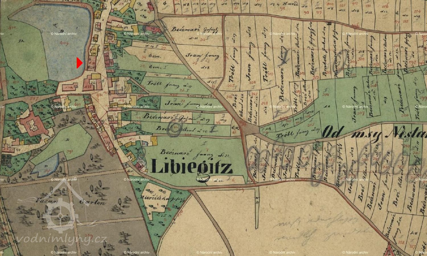 Informace o mlýně jsou uvedeny na informační tabuli místní cyklotrasy umístěné naproti Obecnímu úřadu v Libějovicích. Tato budova byla původně postavena jako dominikální mlýn. Ten byl ve vlastnictví Jana Adolfa Schwarzenberga. Pod vedením Františka Horského byl přestavěn na olejnu na zpracování řepky. Lisovalo se zde 500 kg oleje denně a tímto olejem se svítilo např. v Českých Budějovicích, Třeboni, Písku a jinde. Zajímavostí je především, že olejna byla poháněna vodní turbínou z Návesního rybníka, u jehož hráze se budova nachází.