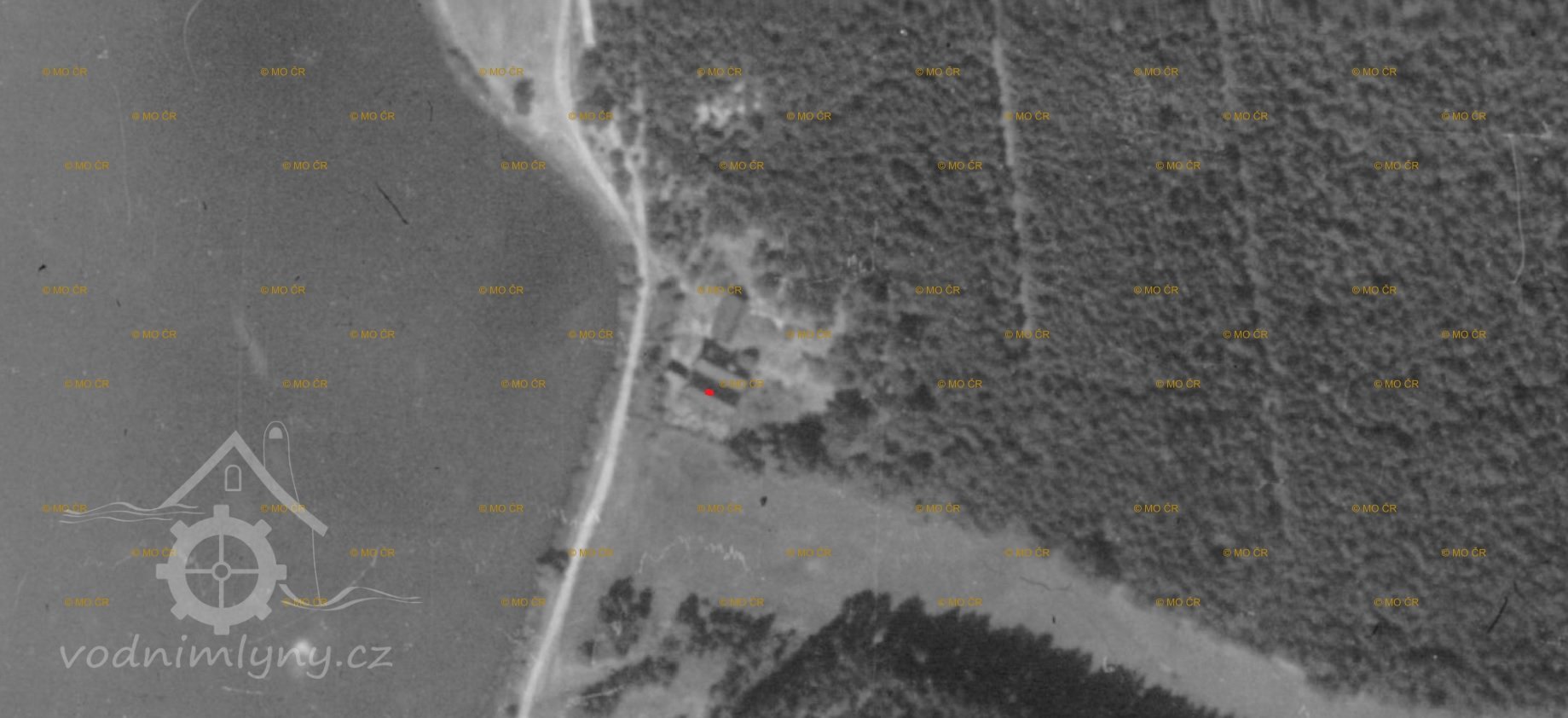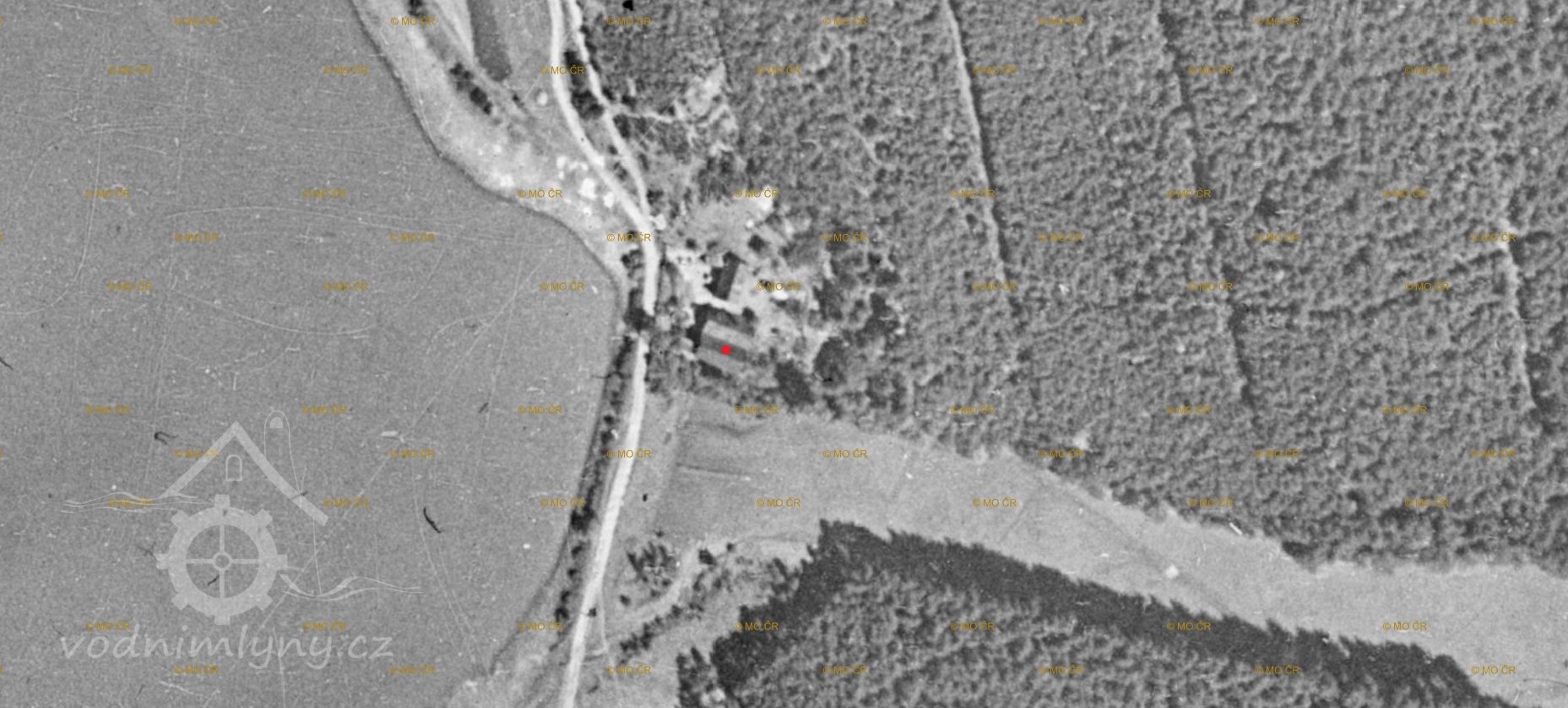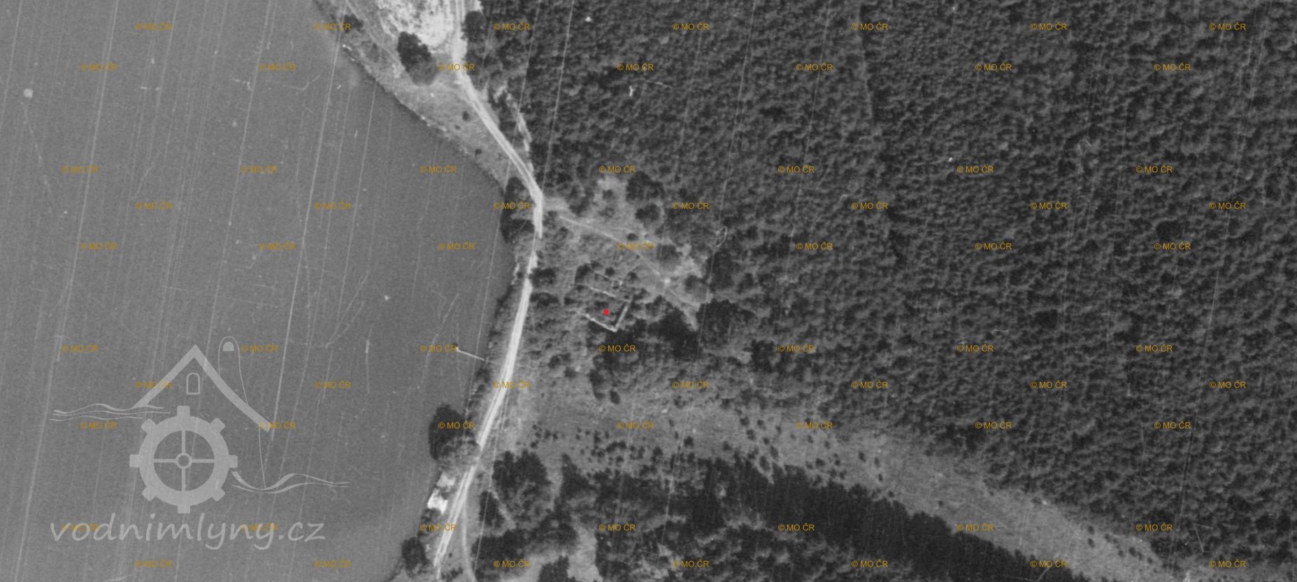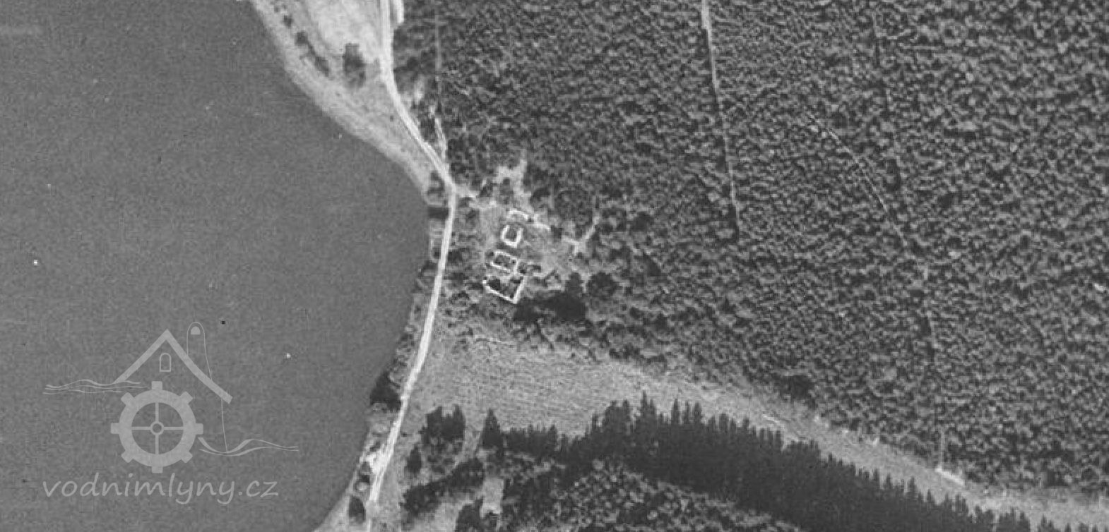 1956 – na leteckém snímku z budov mlýna i hájenky stojí pouze obvodové zdi nebo jejich torza, objekty již nemají střechy.