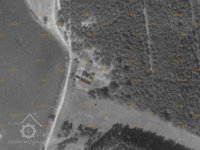 Letecký snímek 1961 – ještě více zbořené trosky zarůstající vegetací.