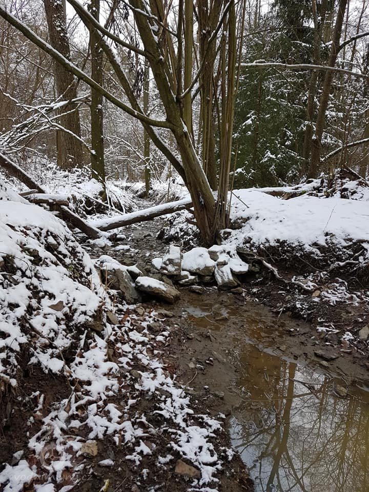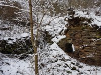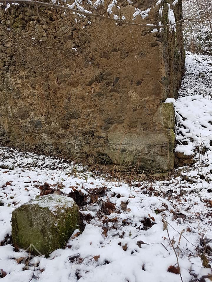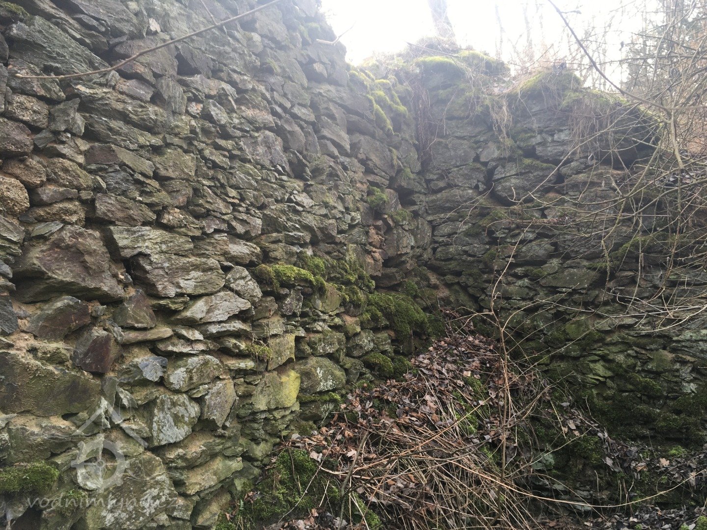 2020 - výrazné zříceniny budovy mlýna pod hrází rybníka, nad jehož břehy se nachází část čs. vojenského opevnění tzv. Řopíky.