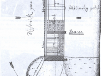 jednolistá rámová pila se sámovačkou a cirkulárkou, poháněna 4. kolem na vodu o prům. 2,37 m