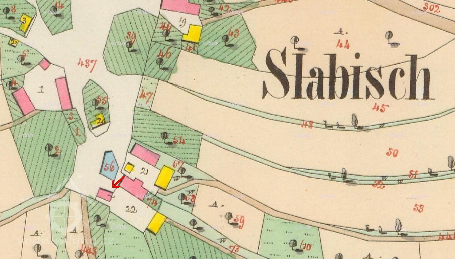 Mlýn se nacházel pod nynějšími bytovkami čp. 8, 9 a 10. Těsně nad mlýnem vedle nynějších bytovek se nacházel rybník sloužící jako akumulační nádržka. Nynější výše položený rybník byl zřízen až později.