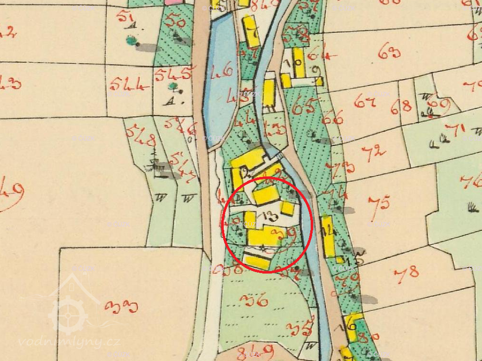 1930: kolo na svrchní vodu, hltnost 0,069 m3/s, spád 4 m, výkon 2,3 HP