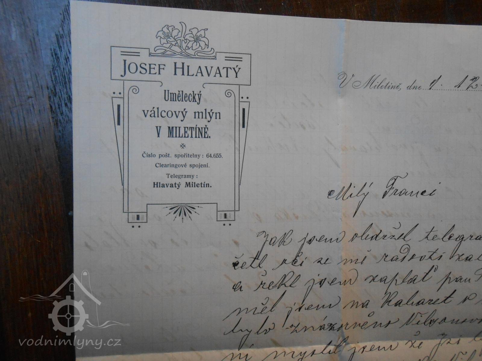 Josef Hlavatý tak vstoupil do nového století skvěle připraven. Mlynářskou živnost rozšířil o pekárnu a obchod s moukou, v roce 1906 zbořil starou pilu a na jejím místě postavil skladiště obilí. Před první světovou válkou stihl ještě zvýšit mlýnici o jedno patro a dopinit stroje. Úřední revize zjistila v roce 1914 „francouzský kámen, špičák a šest válcovacích stolic s příslušenstvím". To vše bylo poháněno vodním kolem o průměru téměř 7 metrů nebo parním strojem. Lze bez nadsázky uvést, že se v té době jednalo o největší a nejmodernější mlýn v kraji, do kterého jezdili zákazníci ze čtyř okresů.