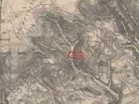 Na mapě vyznačená čtvercová nádržka nad mlýnem.
