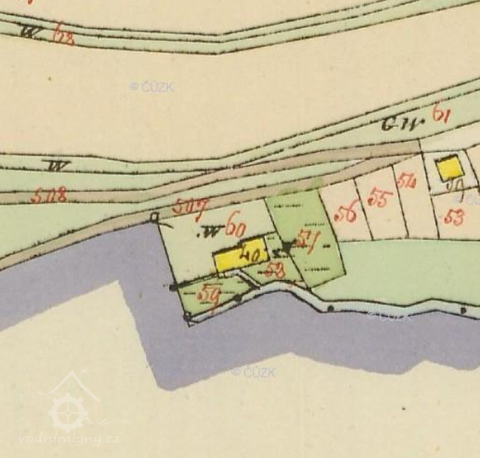 Popis1930: 1 kolo na svrchní vodu, hltnost 0,055 m3/s, spád 6,1 m, výkon 3 HP