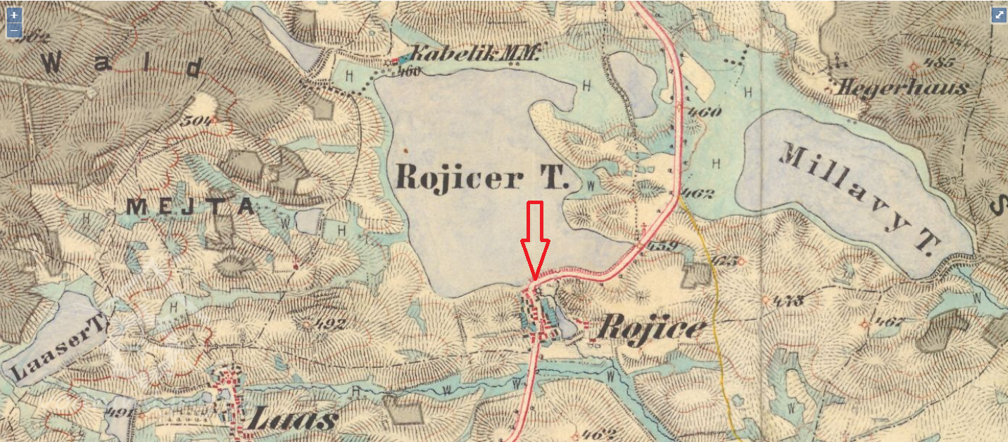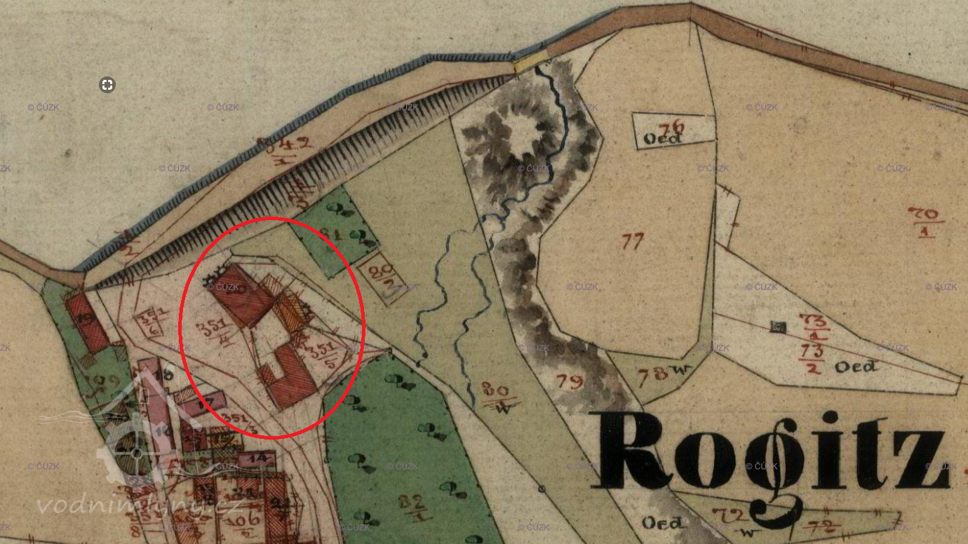 Po roce 1961 zaniklý mlýn pod Velkorojickým rybníkem, z mlýnského areálu zbyla pouze stodola.
