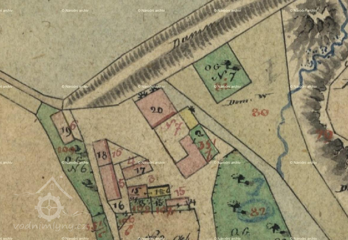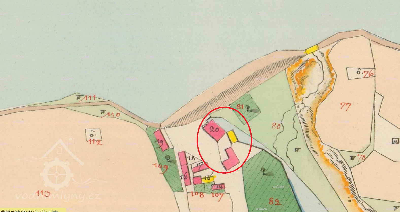 Popis1930: 1 kolo na svrchní vodu, hltnost 0,132 m3/s, spád 4,8 m, výkon 5,4 HP