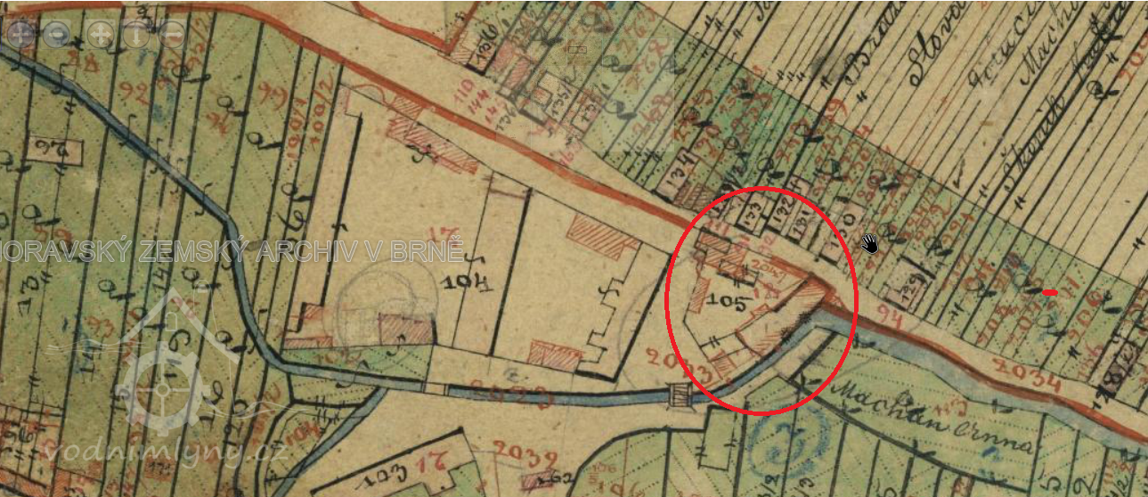 1930: 1 kolo na svrchní vodu, hltnost 0,196 m3/s, spád 5,1 m, výkon 8 HP