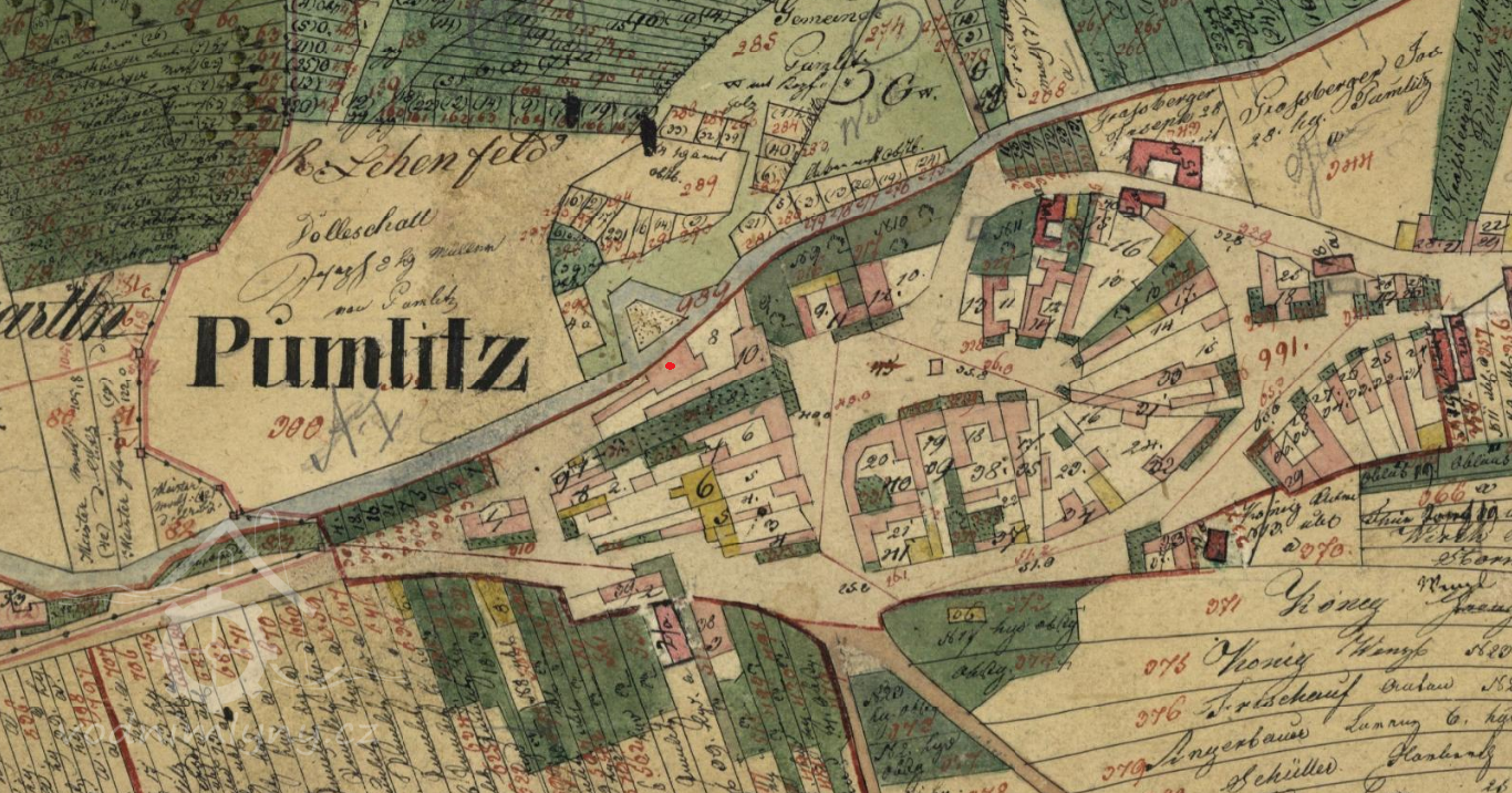 Katastrální mapa evidenční, výřez, 1875, © archivnimapy.cuzk.cz