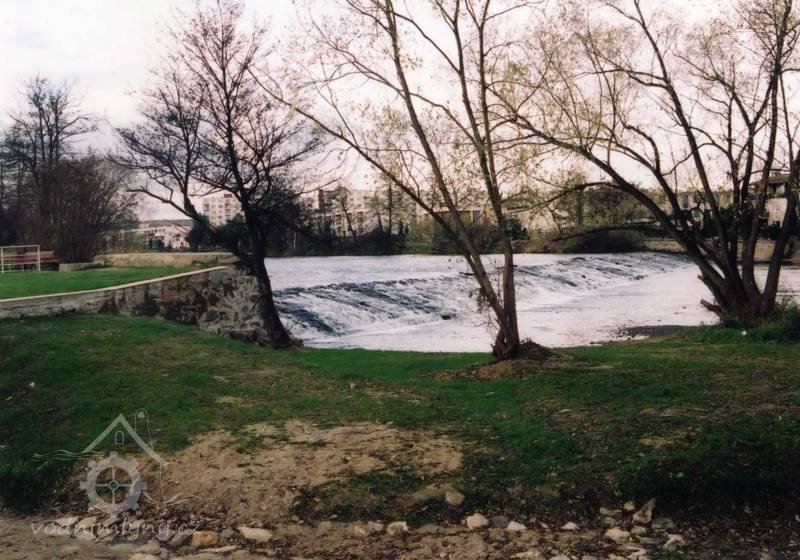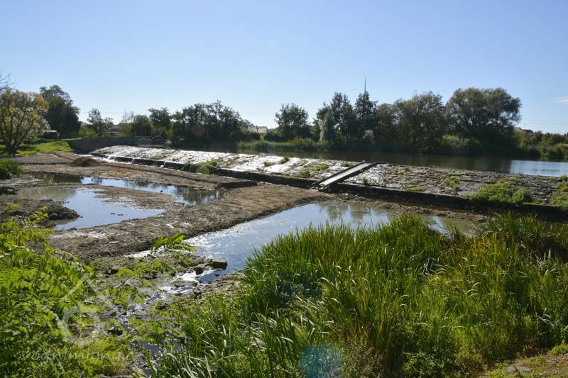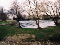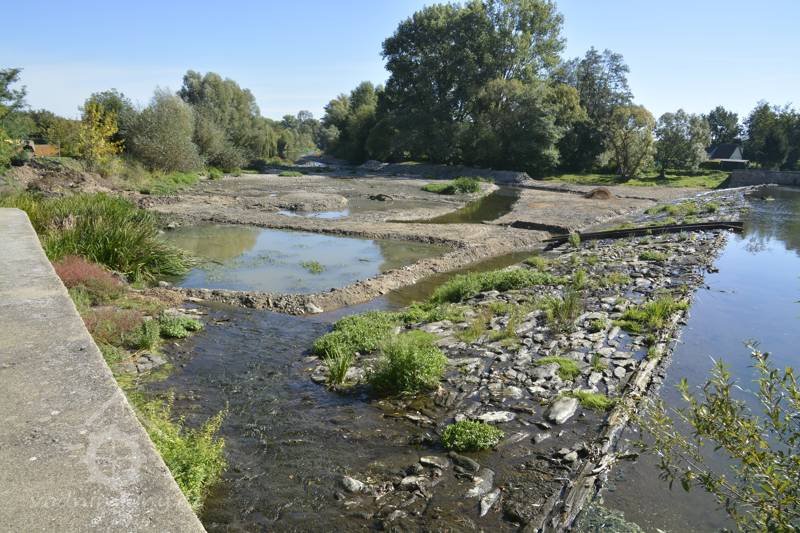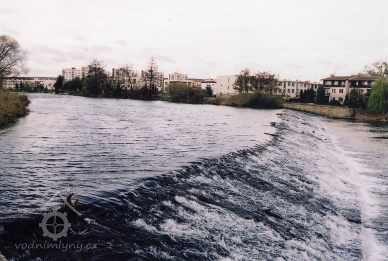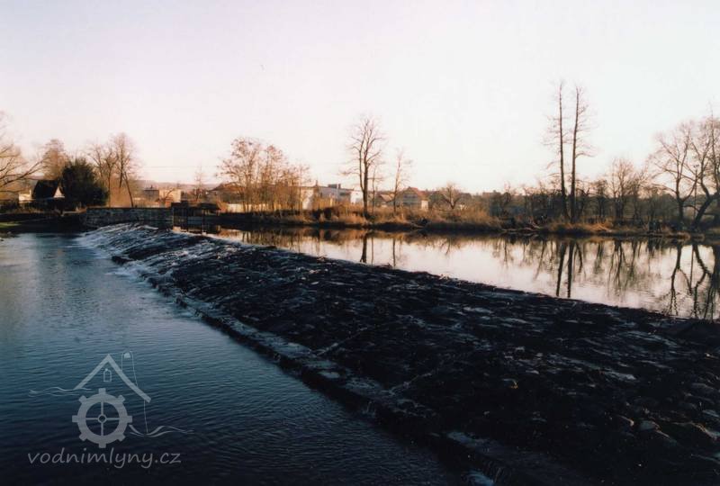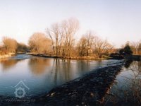 jez na řece Dyji sloužící jako vzdouvací dílo pro náhon mlýna v Nesachlebech, pohled k SZ, 11 2004, © Jana Lorenzová, (Prvky na obrázku: jez)