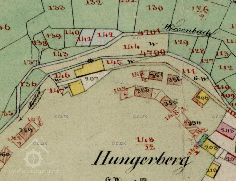 Popis1930: 1 kolo na svrchní vodu, hltnost 0,072 m3/s, spád 5,04 m, výkon 2,67 HP