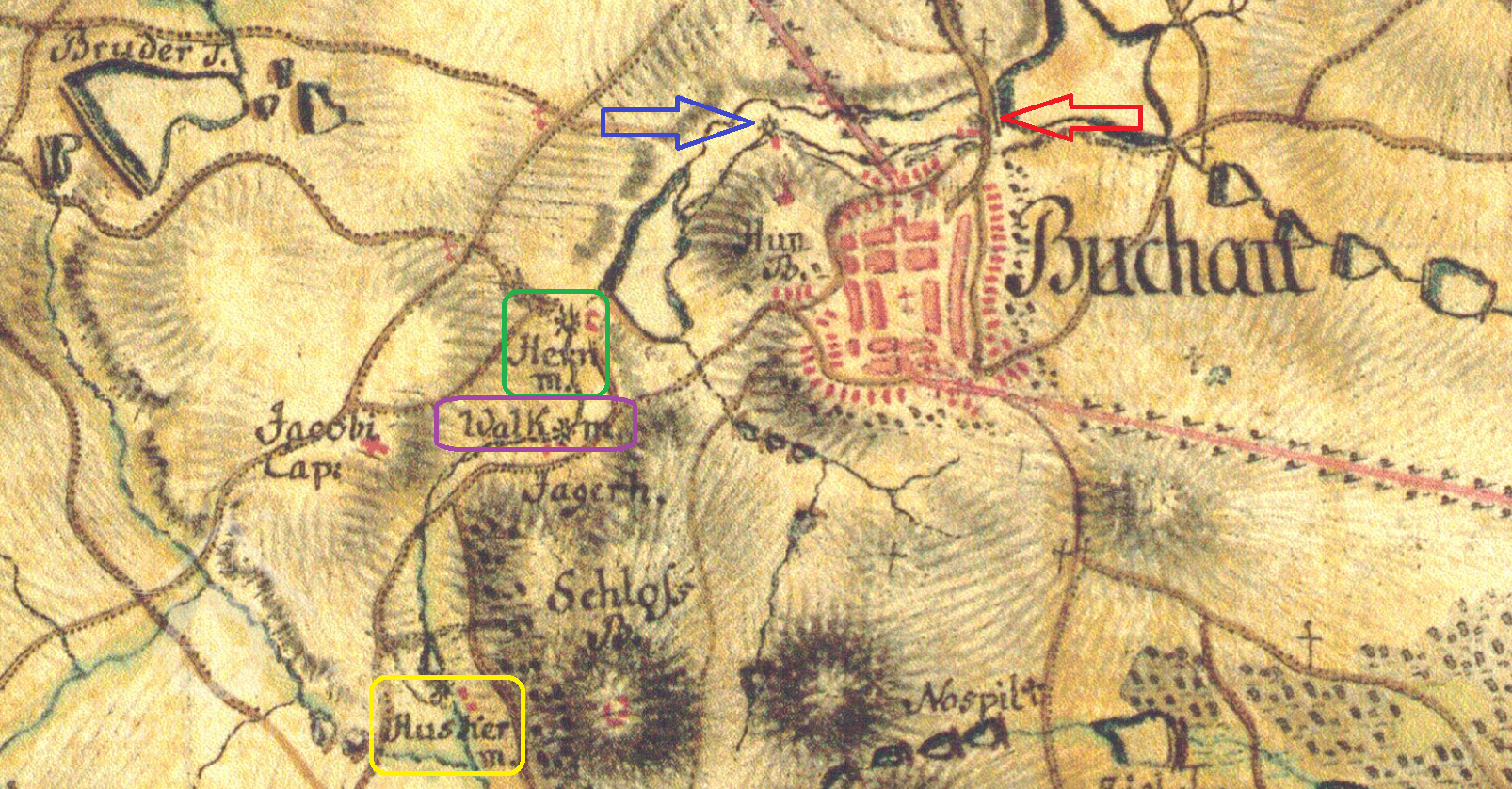 1651 Soupis poddaných podle víry: mlynář Martin (27 let), žena Margareta (25), oba katolíci, děti Maria (5), Sibyla (1/2), Michal (2)