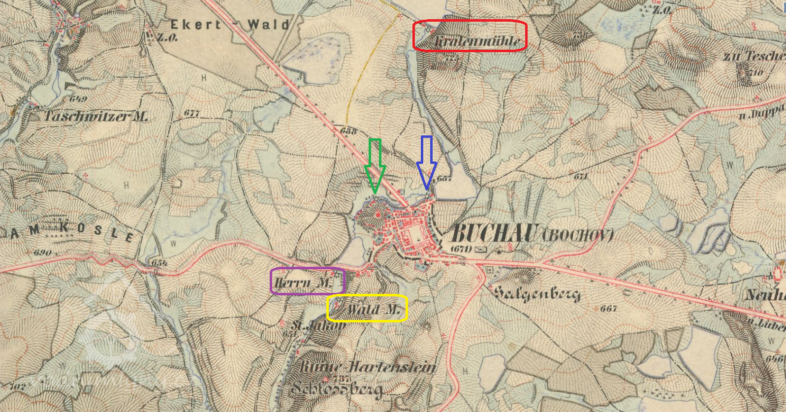 2 km jižně od kostela sv. Michaela Archanděla v Bochově