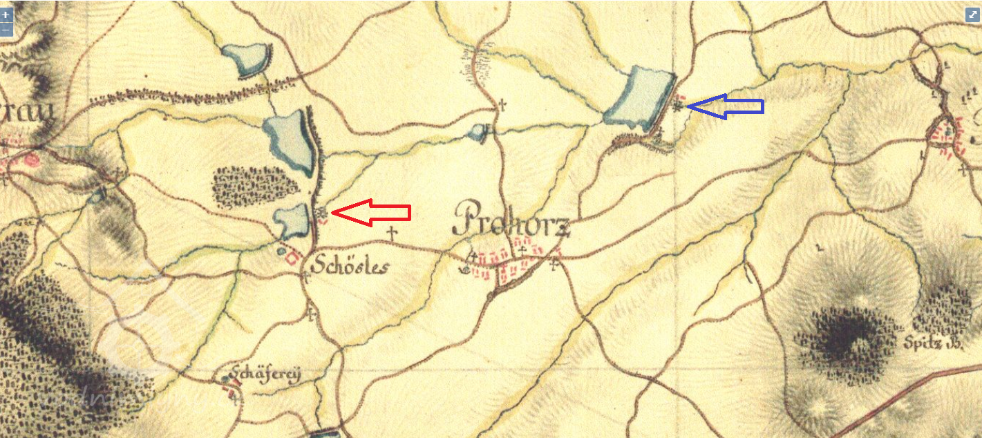 1,2 km západně od kapličky v Prohoři