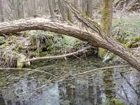Voda zadržena nádržkou s hrází o šíří 1 m, z nádržky voda vedena rourou, jalový přepad opatřen stavidlem,