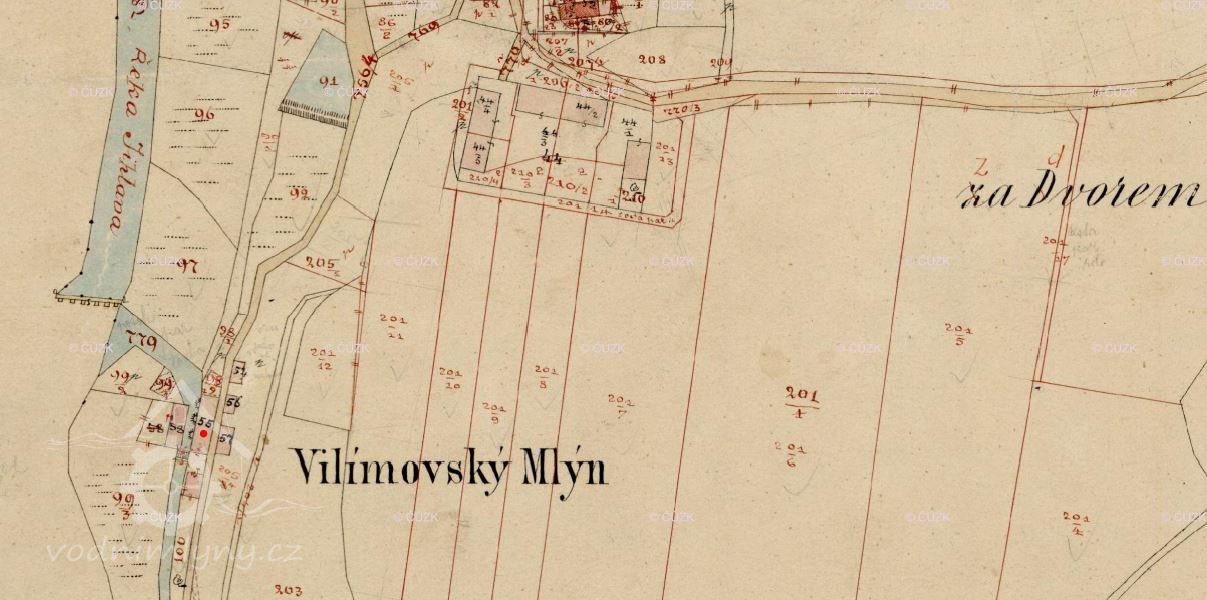 Mlýn má ve štítě letopočet 1369, kolem r. 1556 byl v těchto místech zaznamenán svobodný dvůr mana Matěje, fořství a Vílímovský mlýn. Podle ověřených pramenů pochází však první písemná zmínka o mlýně až z r. 1620.