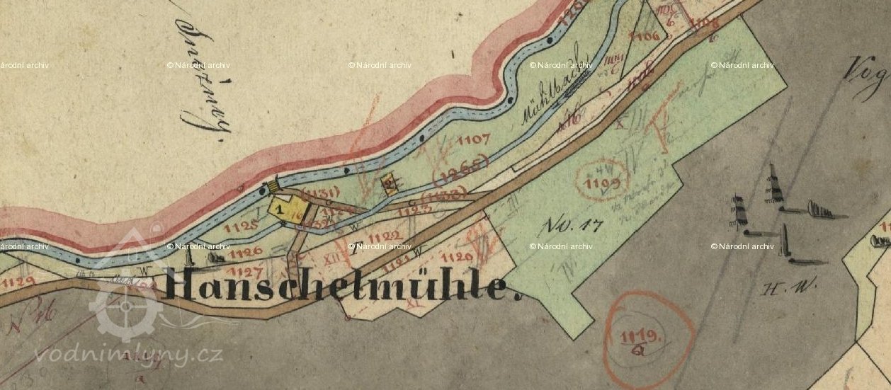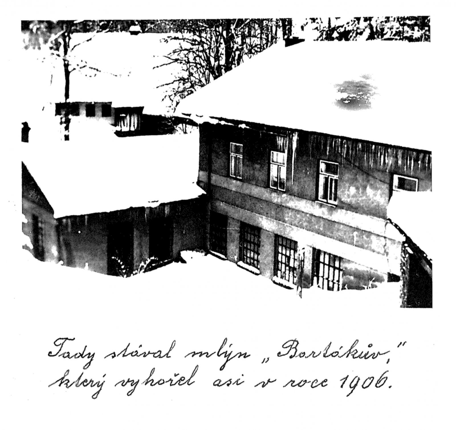 1907 Jaroslav Marek na místě mlýna postavil tkalcovničku na 6 stavů