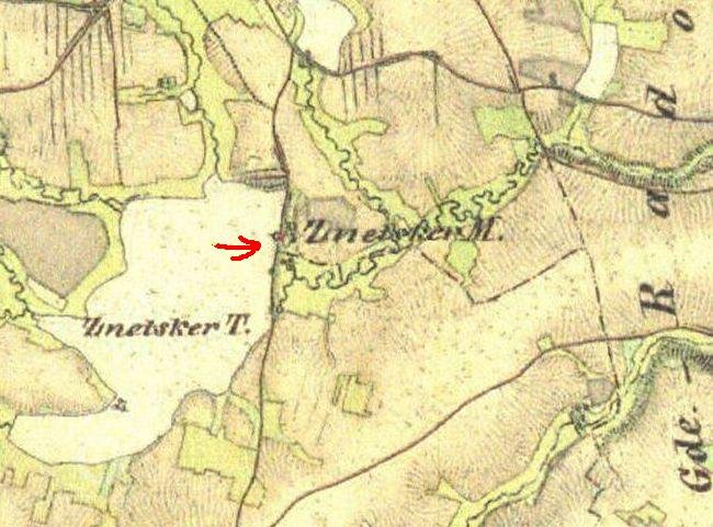 Samota 600 m jižně od obce Znětínek, pod hrází Znětínského rybníka