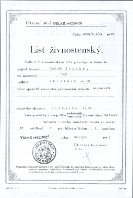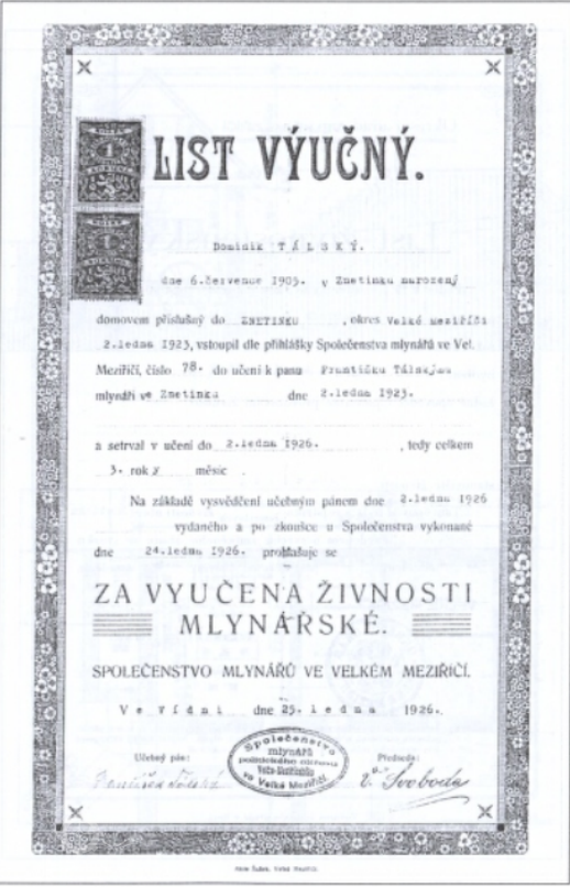 1936 manželé Tálští postoupili mlýn synovi Dominiku Tálskému a jeho nastávající Anežce Šmardové z Pokojova za  70.000 Kč (30.000 hotově, zbytek na zajištění doživotního výminku)