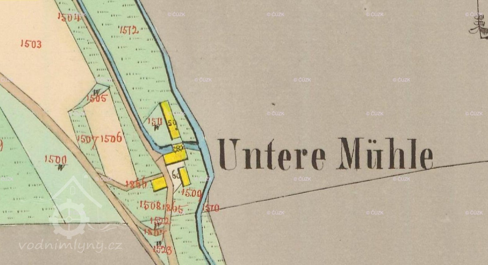 1951 - mlýn zobrazen na topografické mapě systému S 1 : 50 000