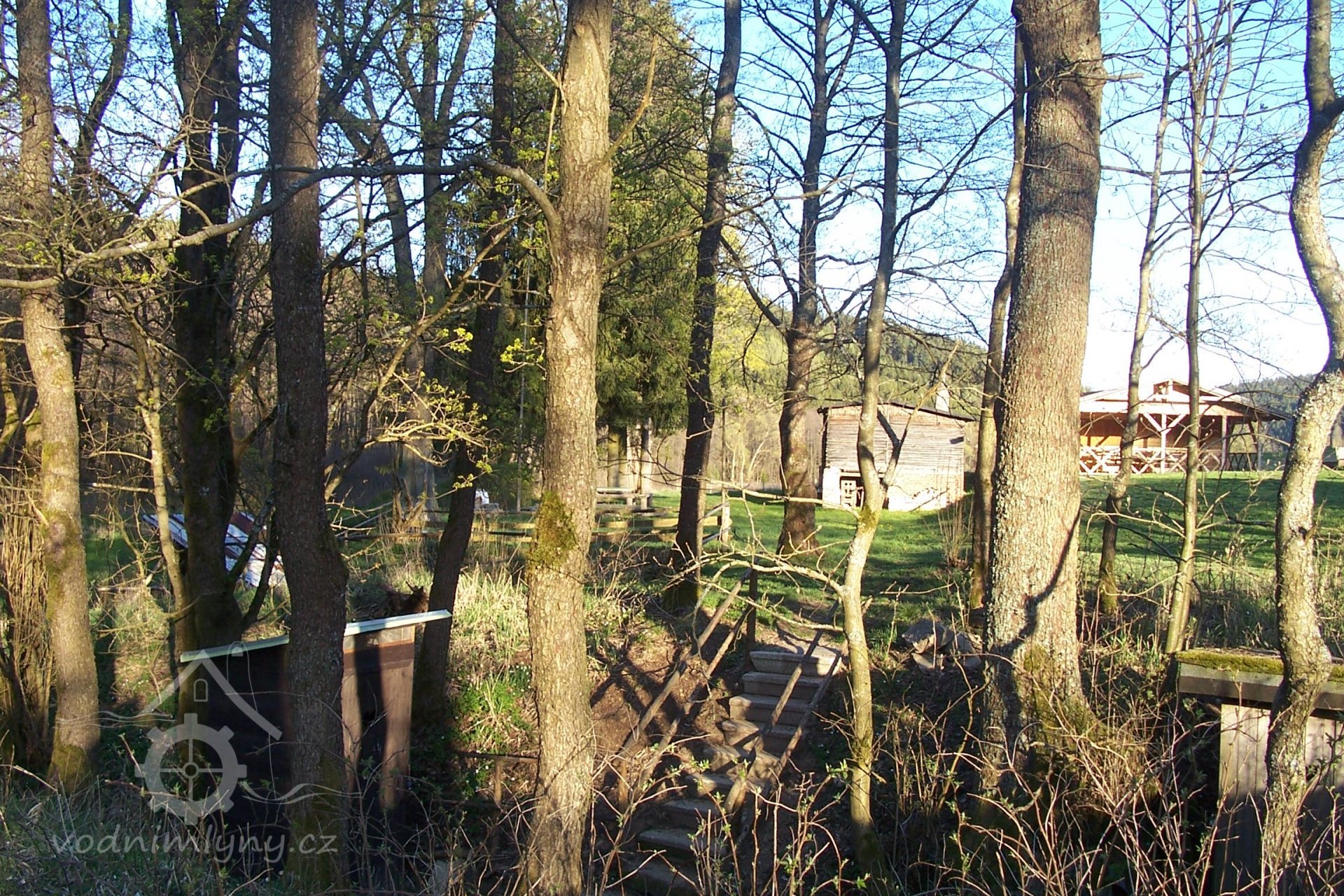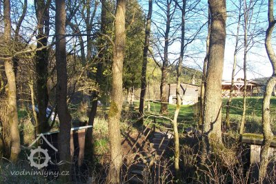 Zbořený mlýn, nedaleko mlýniště postavena chata.