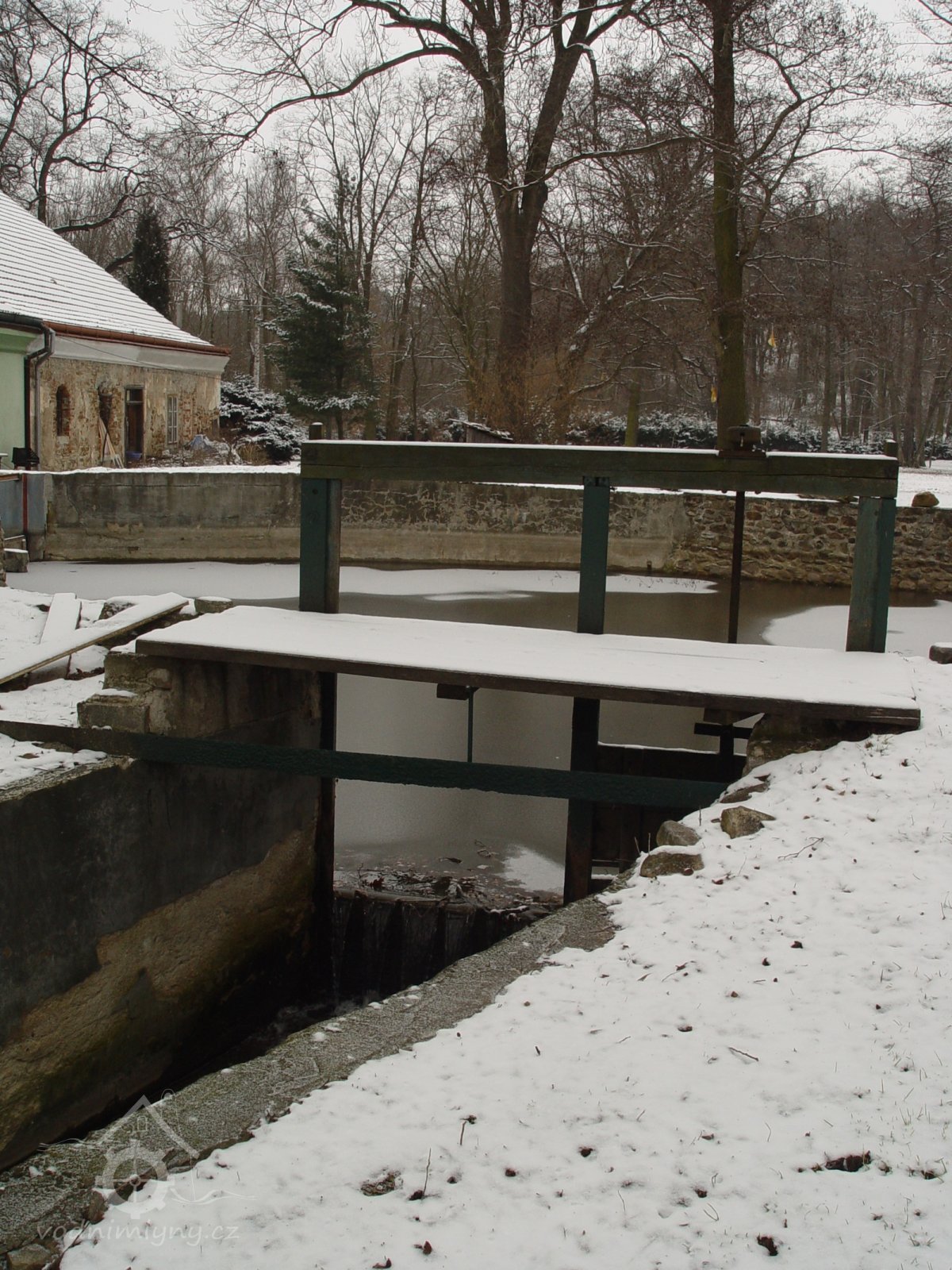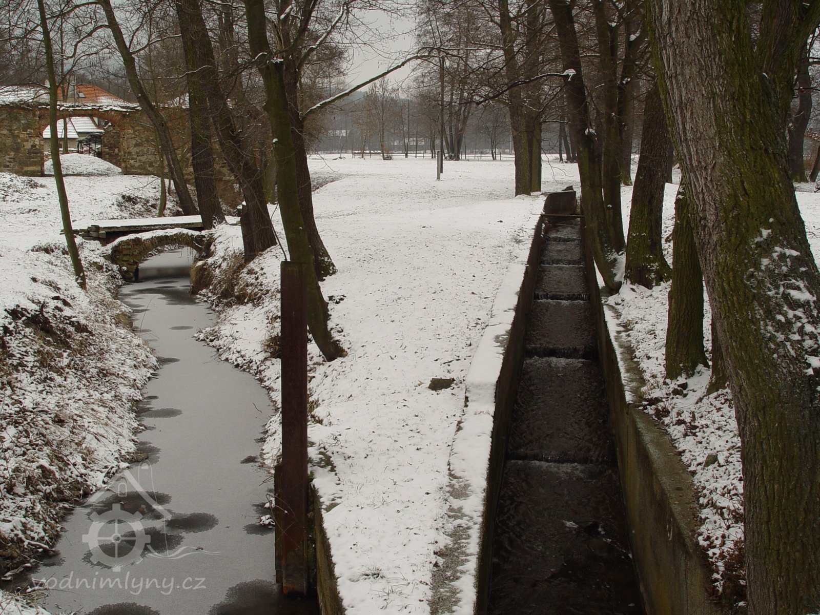 Náhon k mlýnu začíná u jezu asi 0,5 km proti proudu.