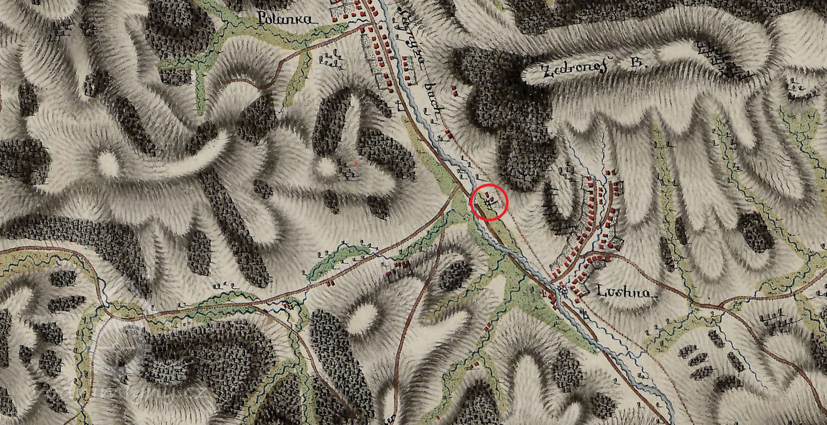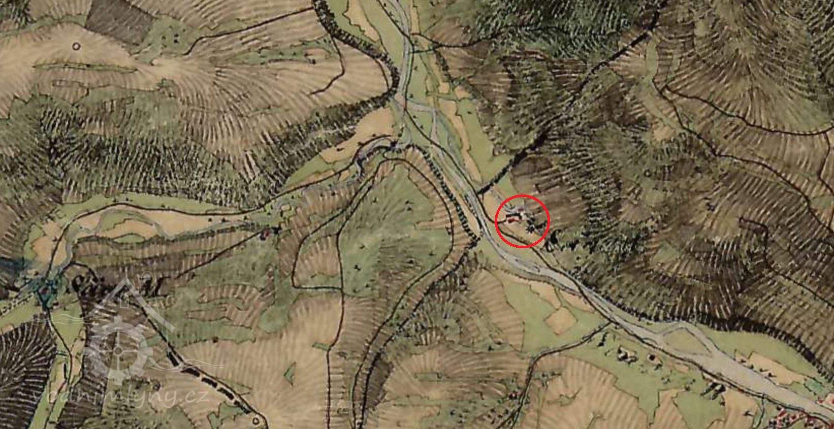 Mlýn stojí na polosamotě, směrem na Valašskou Polanku.