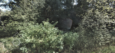 Široký náhon, dlouhý cca 200 m, zbytky hráze rybníčka nad mlýnem.
