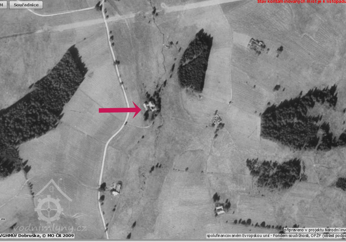 Mlýn byl cca 1km JZ od kostela v Pohoří