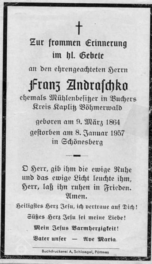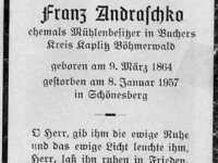 do r. 1945 Franz Andraschko (*9.3.1864 - †8.1.1957)
