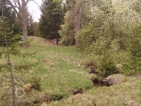 Voda odtékající z mlýna pokračovala dalším uměle vytvořeným náhonem směrem na sever k budově historického hamru (č.p. 99), založeného dle A.Teichla v r. 1834, jehož pozůstatky jsou v terénu stále ještě rozeznatelné.