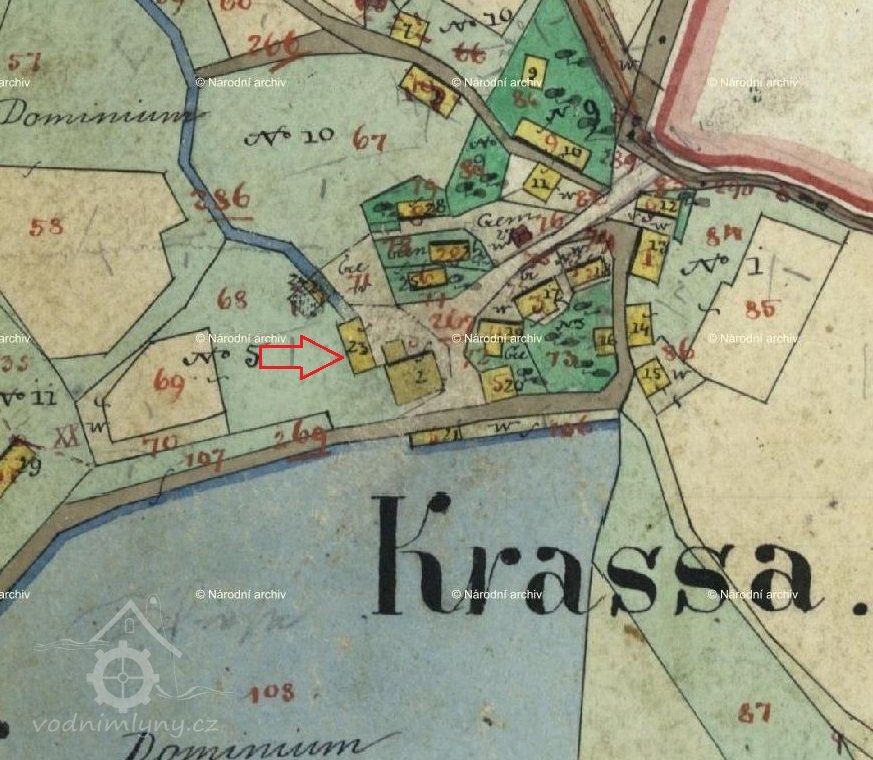 Popis1930: 1 kolo na svrchní vodu, hltnost 0,077 m3/s, spád 3 m, výkon 2 HP