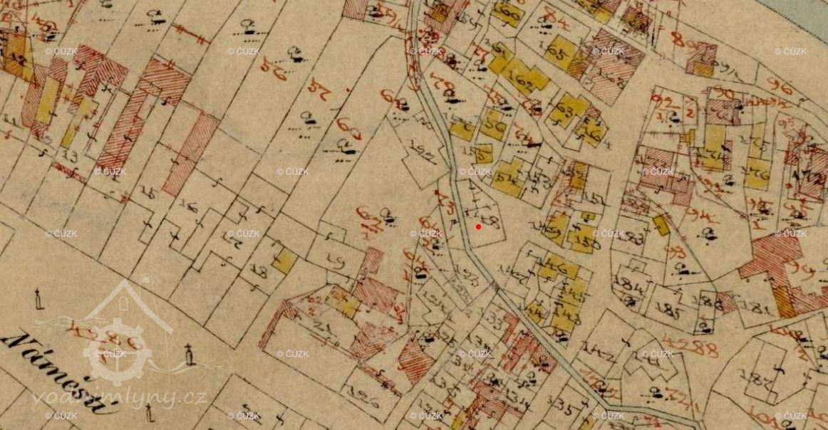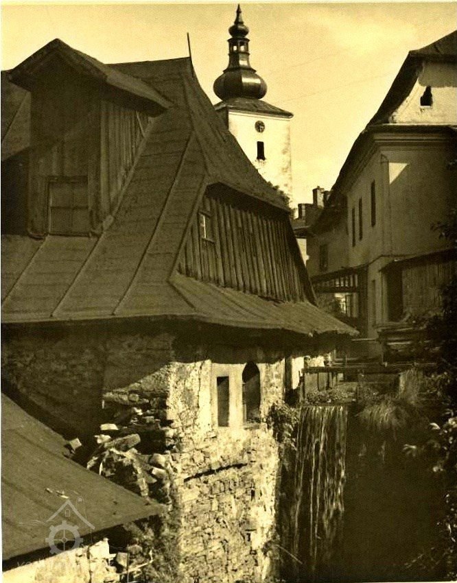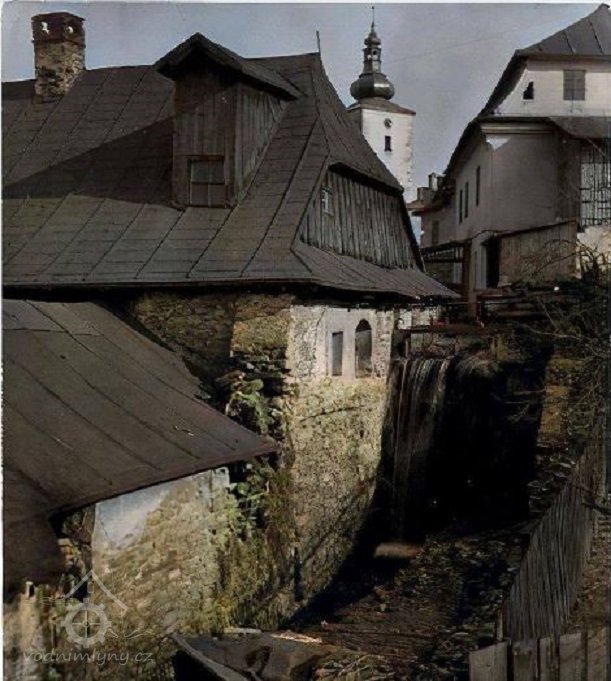 1730: při horním mlejně jest kamenná zeď při palečných kolách z gruntu nově učiněna, kde prv toliko dřevěná stěna byla a celá jistevka také jest z kamení vystavena a co kamení nadbylo, ustavil se mostek kamenný nade mlejnem a to podobně za nadepsaného purgmistra pana Václava Konvičky