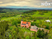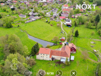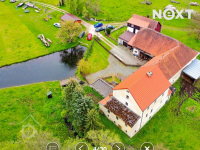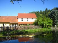 Pohled na mlýn, v pozadí kostel, 06 2021, © sreality.cz