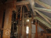 Výtahy a transmise v podkroví, 06 2021, © sreality.cz, (Prvky na obrázku: transmise, řemenice, převody - ozubená kola, pastorky (průmyslový výrobek), transmise, řemenice, převody - transmisní hřídele s řemenicemi (výrobek průmyslový i řemeslný), výtahy a dopravníky)