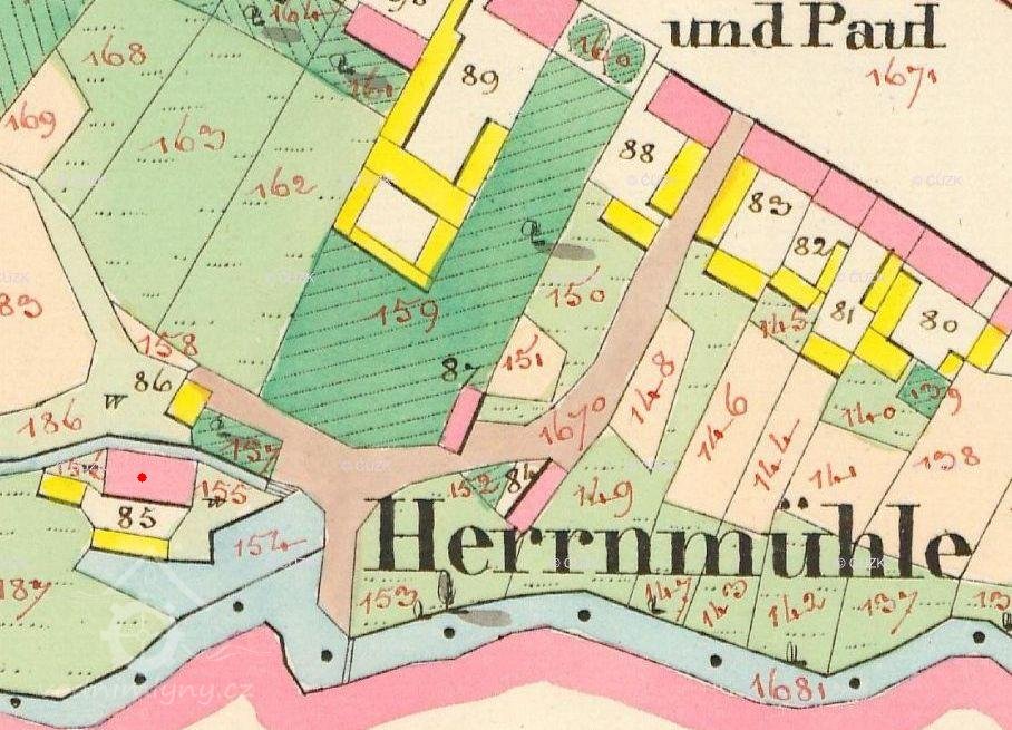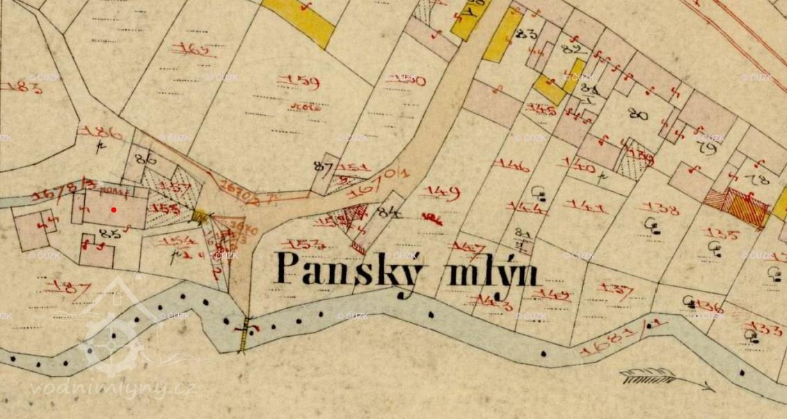 Panský mlýn je značen na I. a II. vojenském mapování a na císařském otisku z r. 1835.