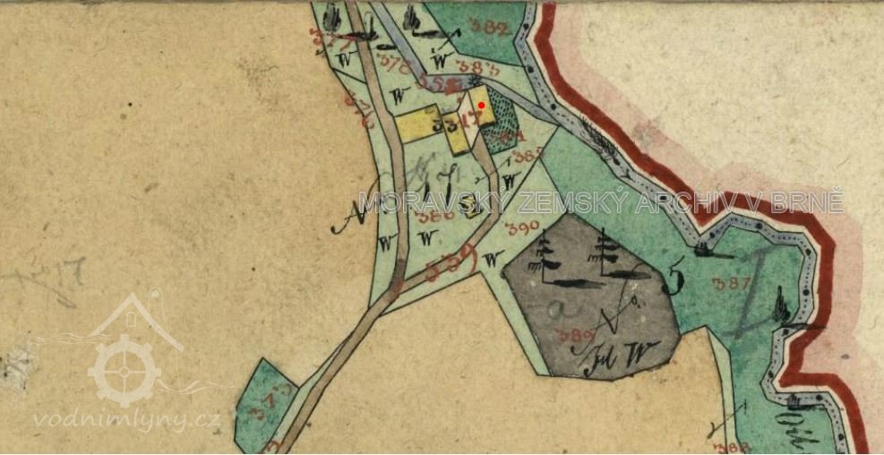 Popis1930: 1 kolo na svrchní vodu, hltnost 0,06 m3/s, spád 4,8 m, výkon 2,5 HP