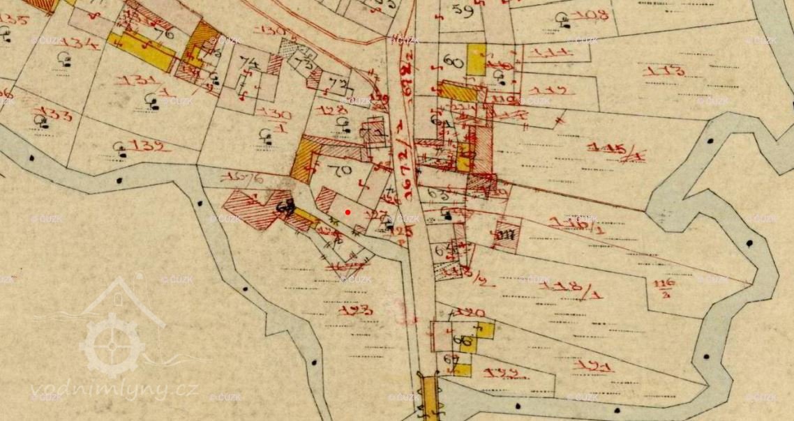 Popis1930: 1 kolo na spodní vodu, hltnost 0,401 m3/s, spád 1,66 m, výkon 4 HP