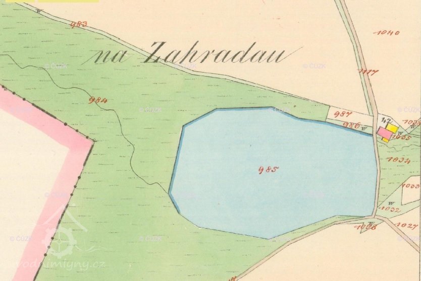 Popisv roce 1930 hltnost 0,045 m3/s, spád 6,3m a výkon 2,1k.s.