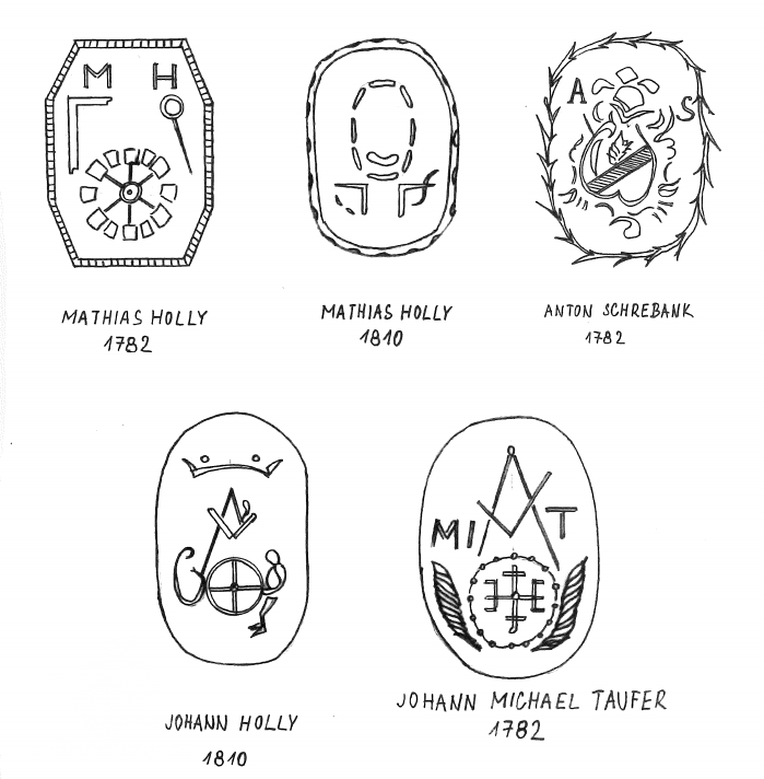 17.5.1810 Johann Holly zemřel, mlýn  o 6 složeních a s kašníkem oceněn na 46.800 zl., mlýn přebírá syn Mathias Holly