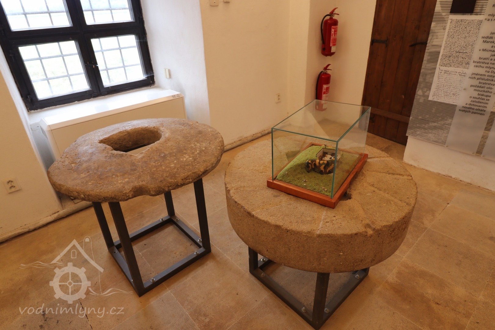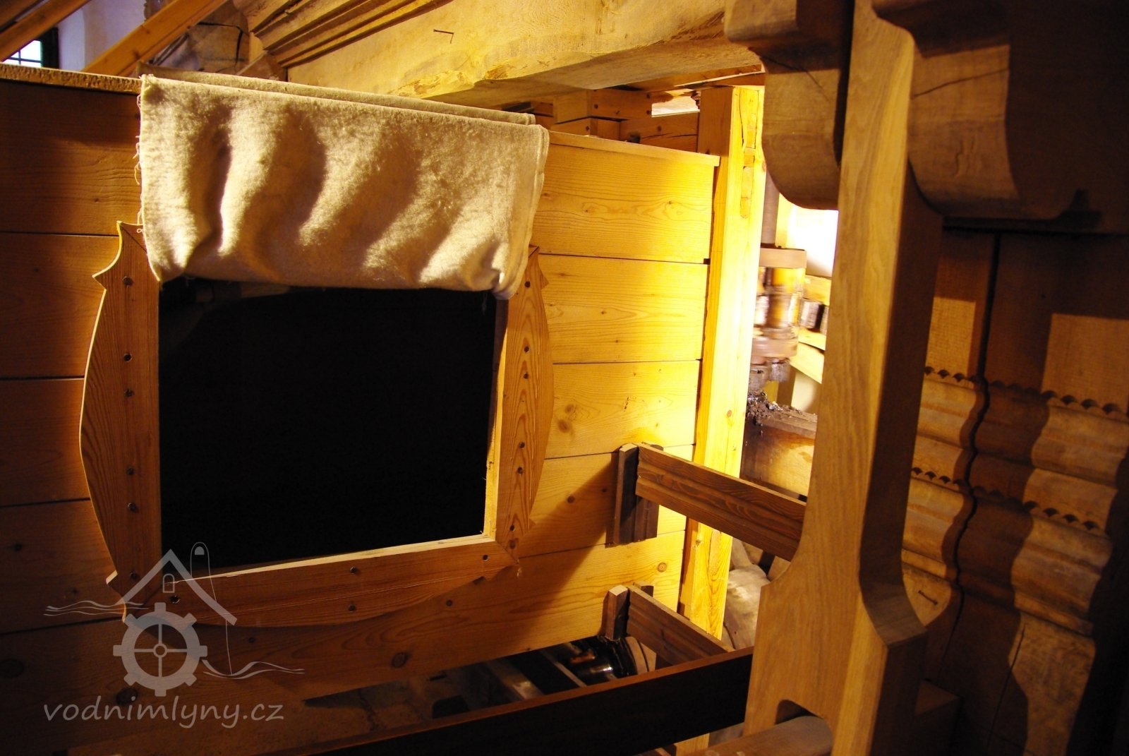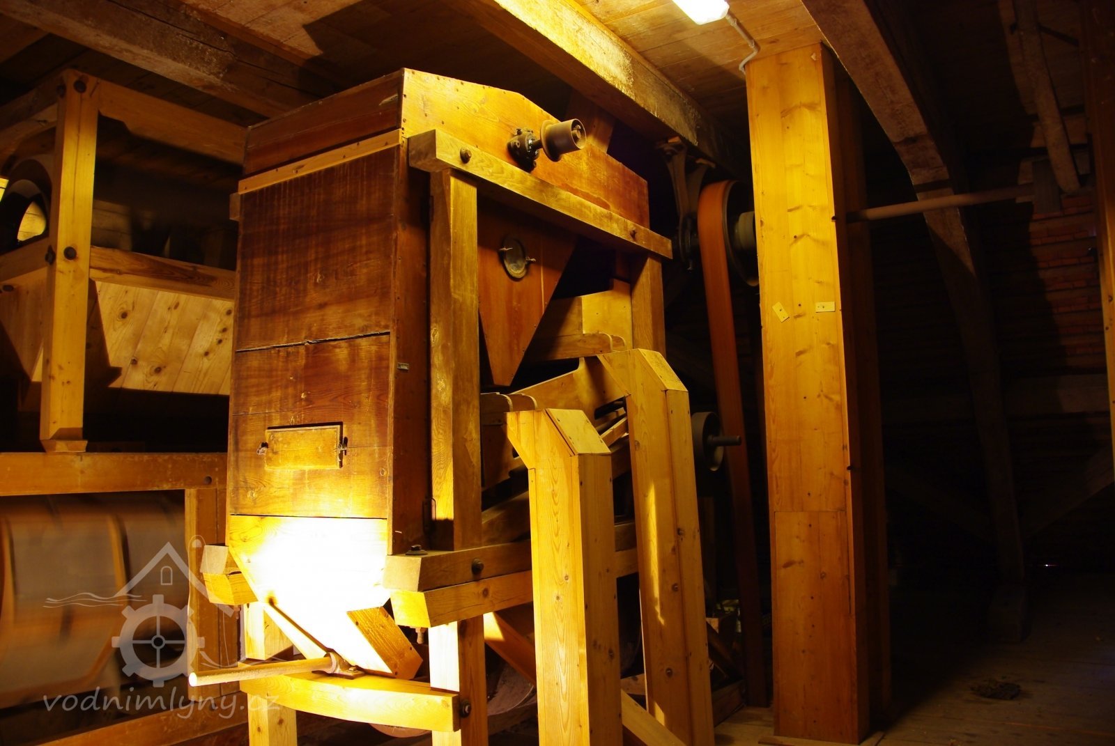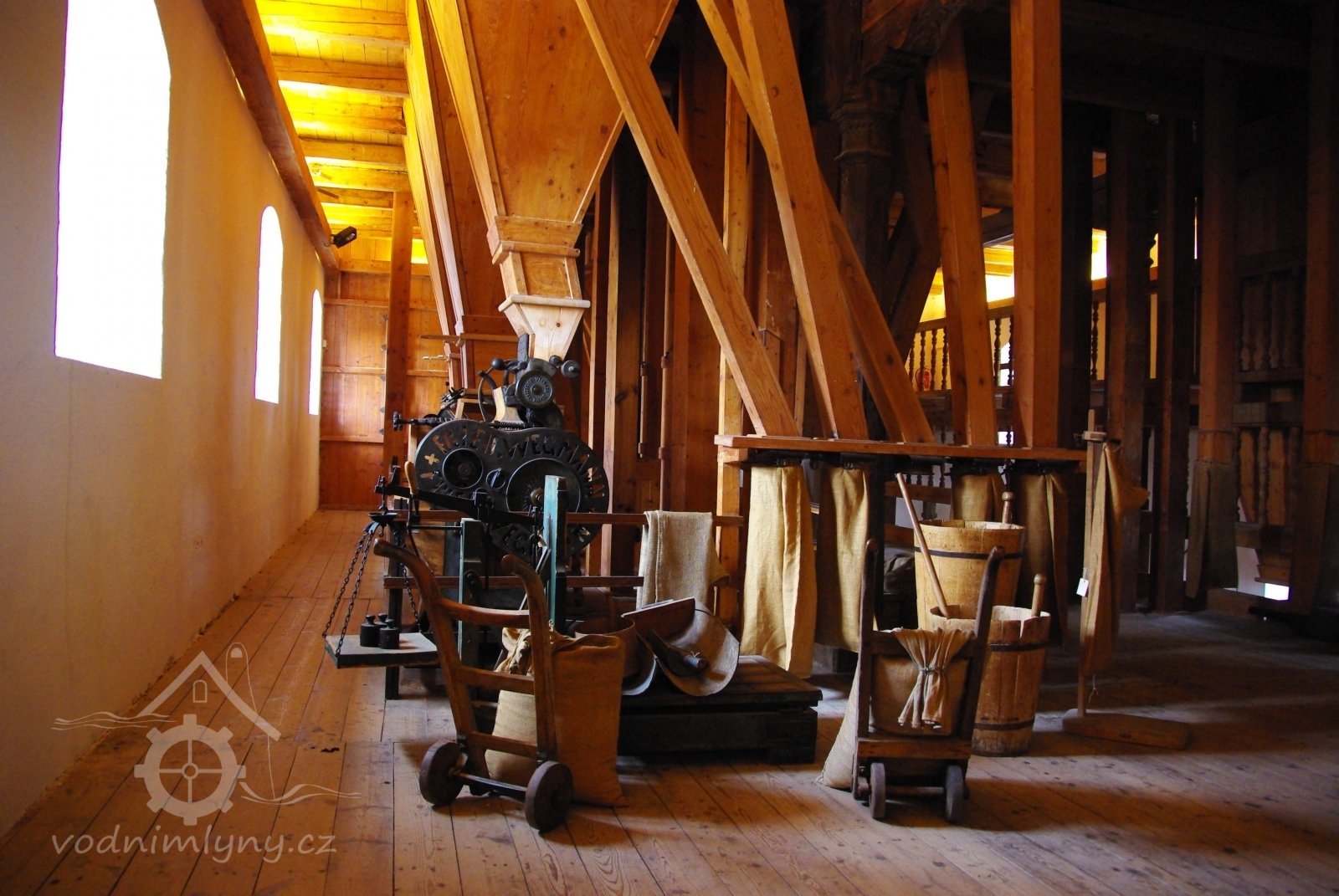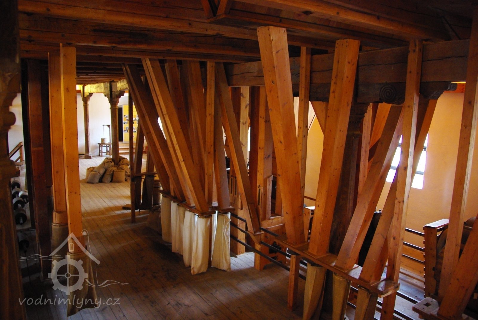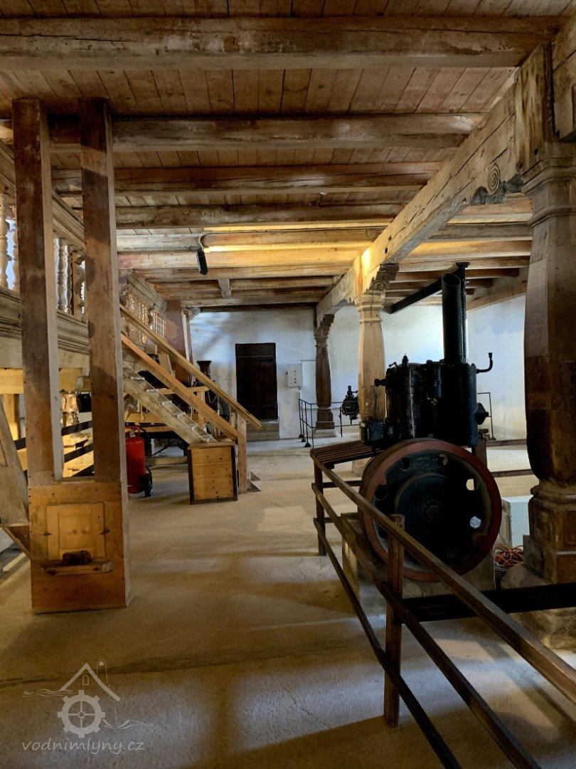 V přízemí vlevo je průjezd valeně klenutý, z něhož je přístupná stará mlýnice a přes přemostěný náhon louka za mlýnem. Mlýnice je prostor jdoucí přes dvě patra s trámovým stropem vyřezávaným (na stropním trámu vzadu proti vchodu je vyřezán nápis: FJ 1738 FS) a vším mlýnským zařízením.
