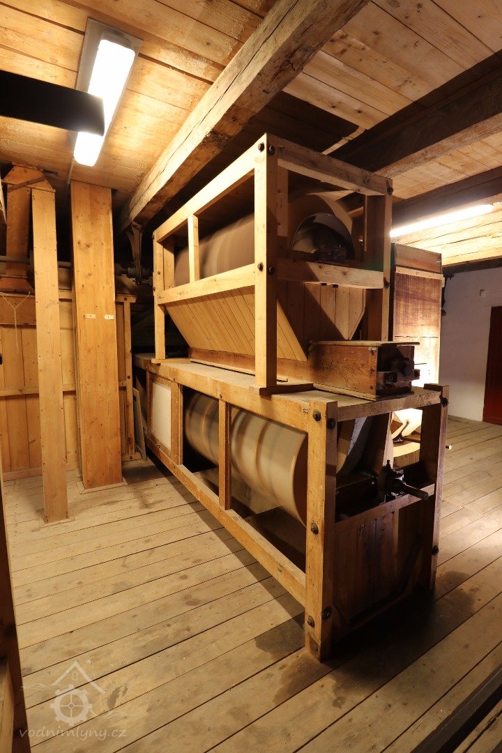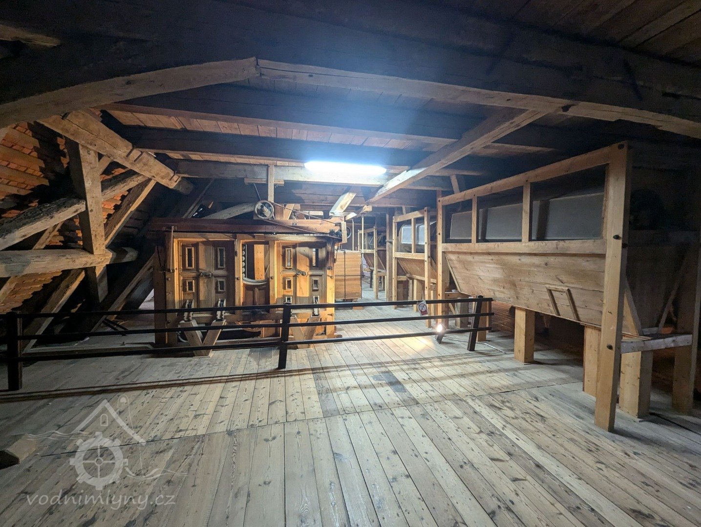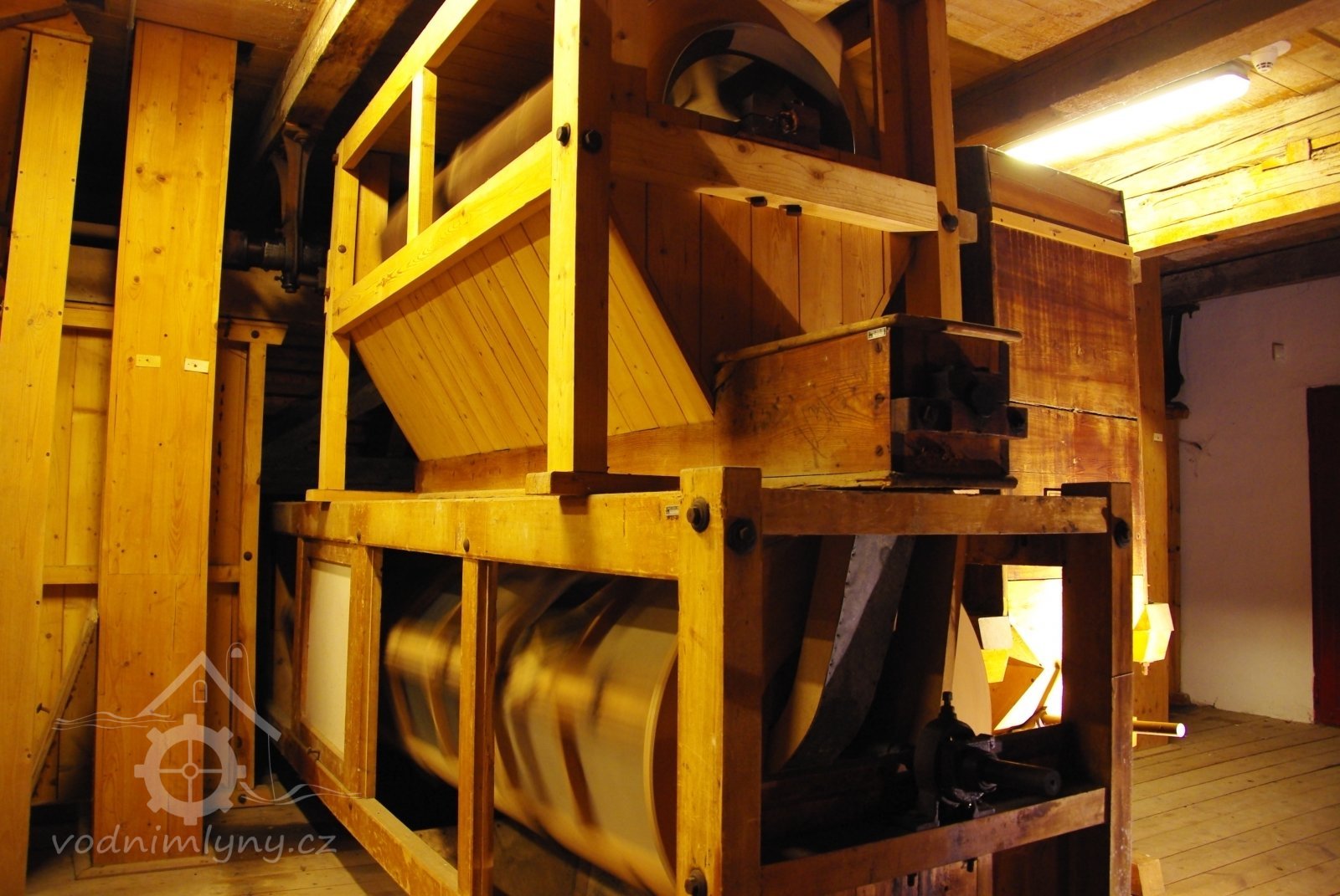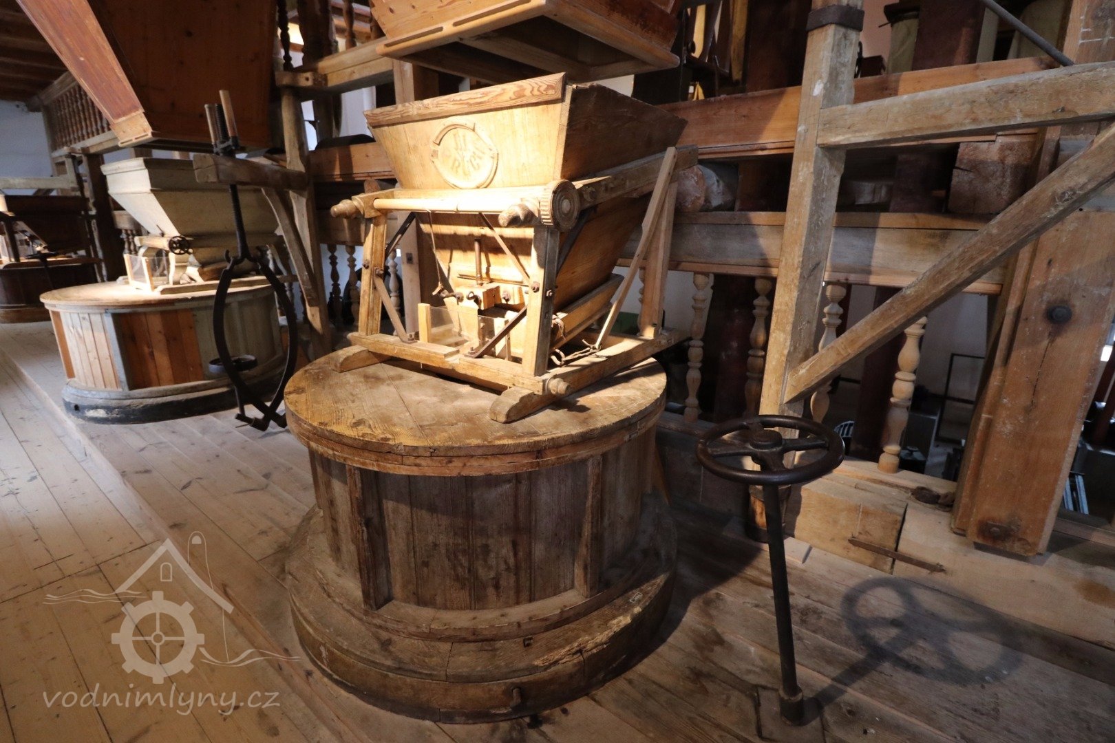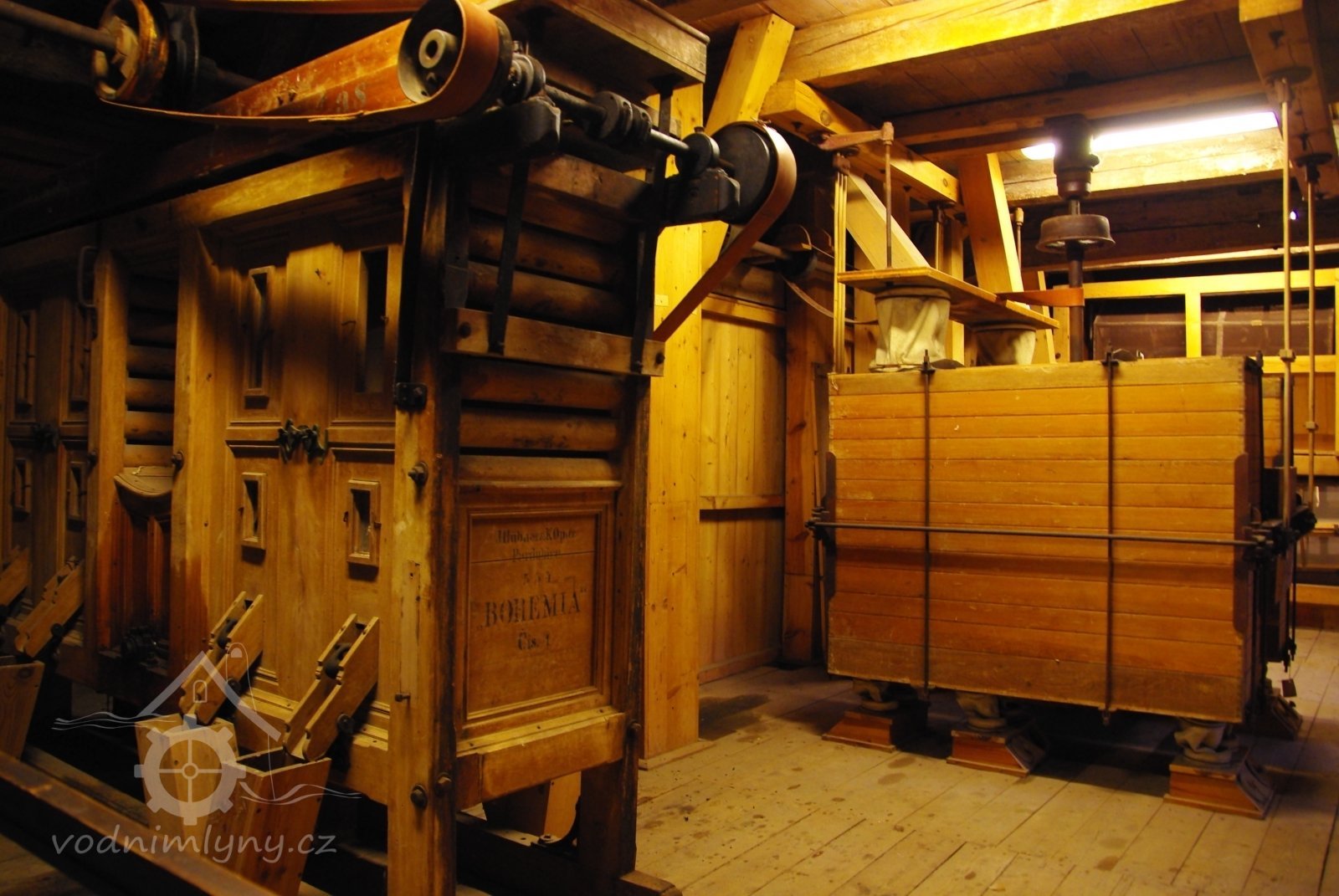 V přízemí vlevo je průjezd valeně klenutý, z něhož je přístupná stará mlýnice a přes přemostěný náhon louka za mlýnem. Mlýnice je prostor jdoucí přes dvě patra s trámovým stropem vyřezávaným (na stropním trámu vzadu proti vchodu je vyřezán nápis: FJ 1738 FS) a vším mlýnským zařízením.
