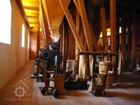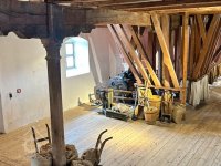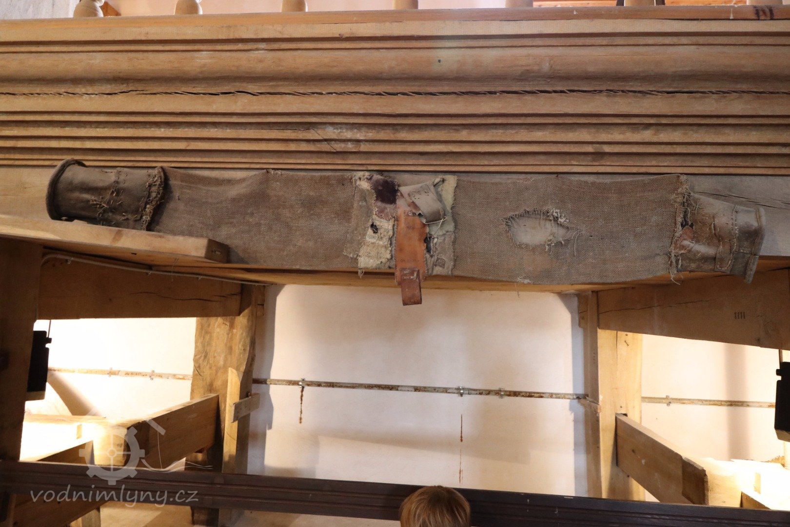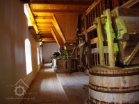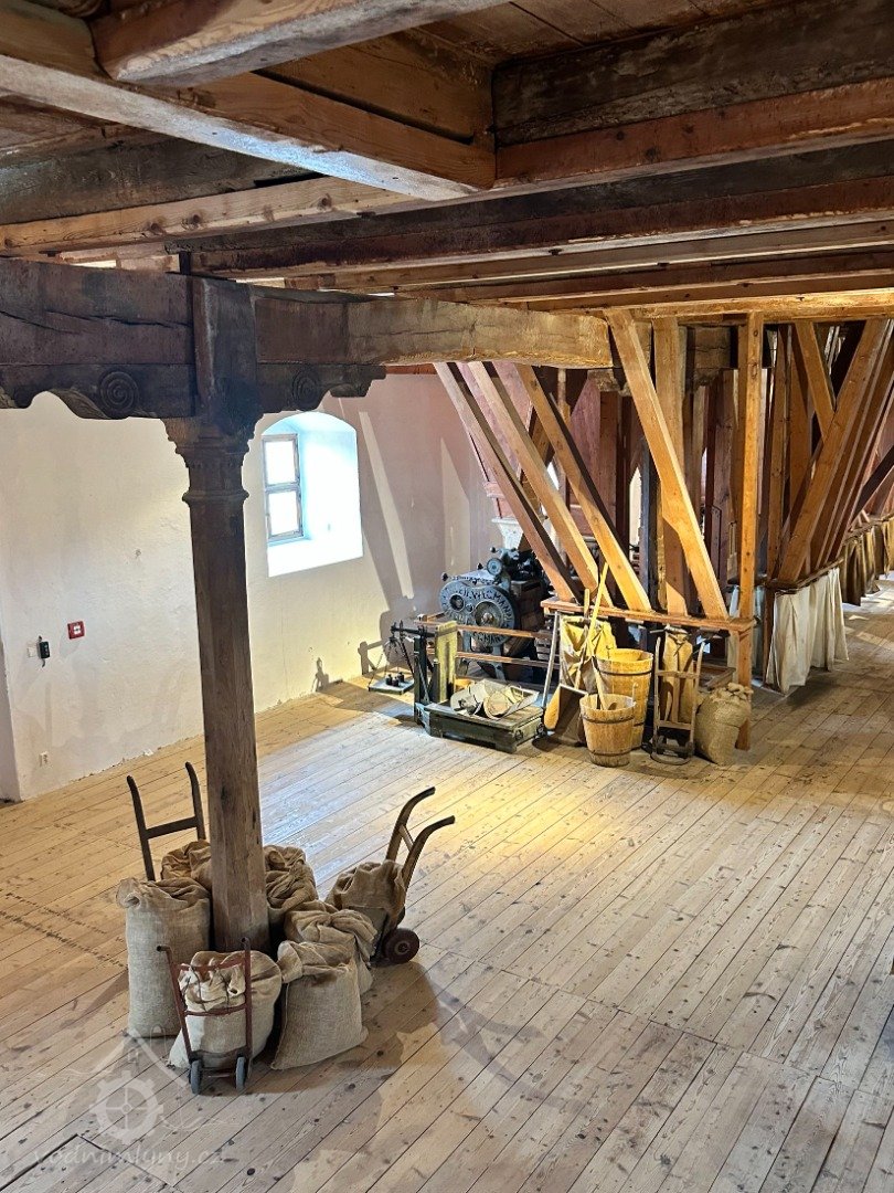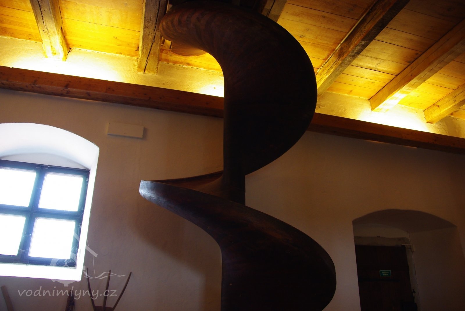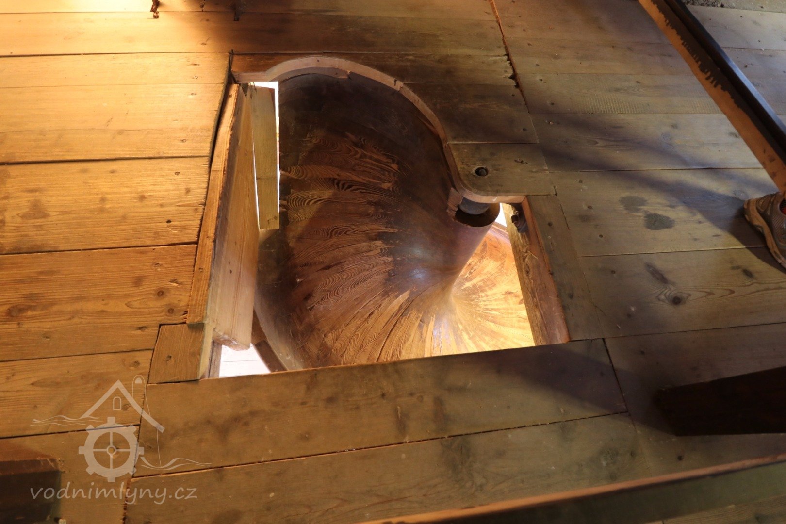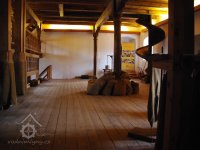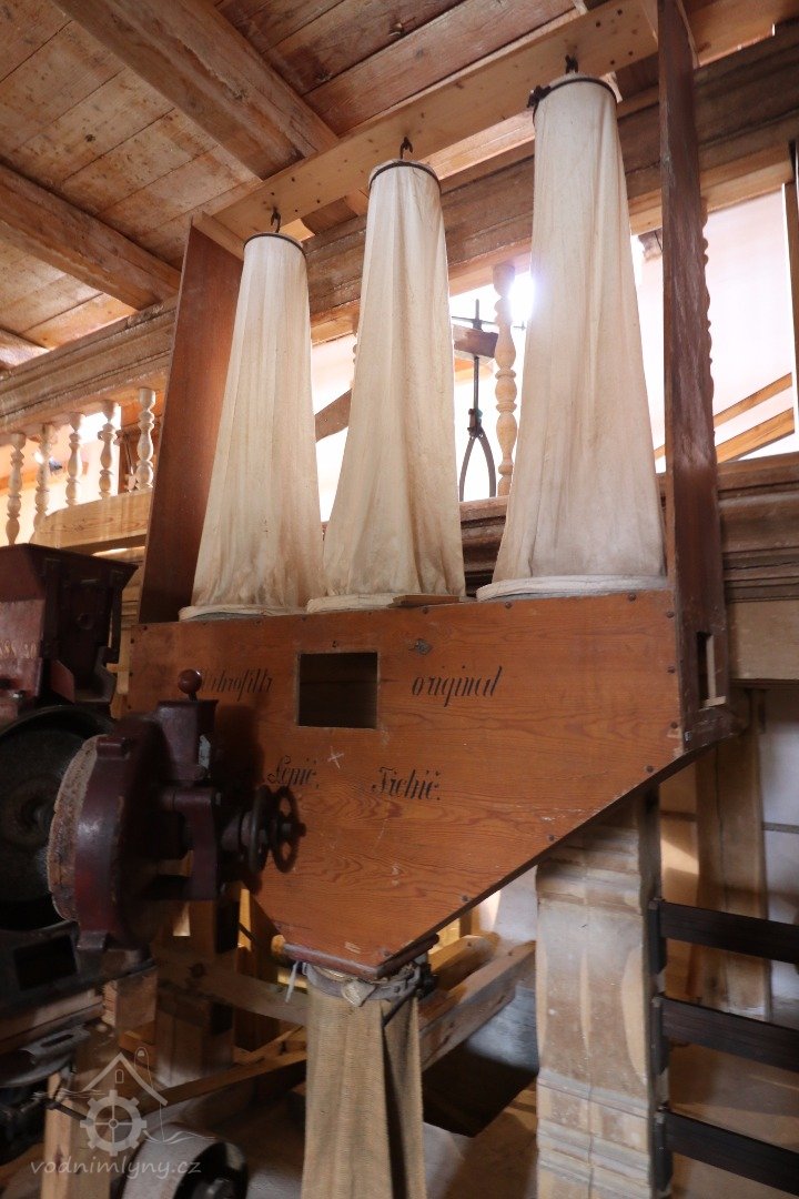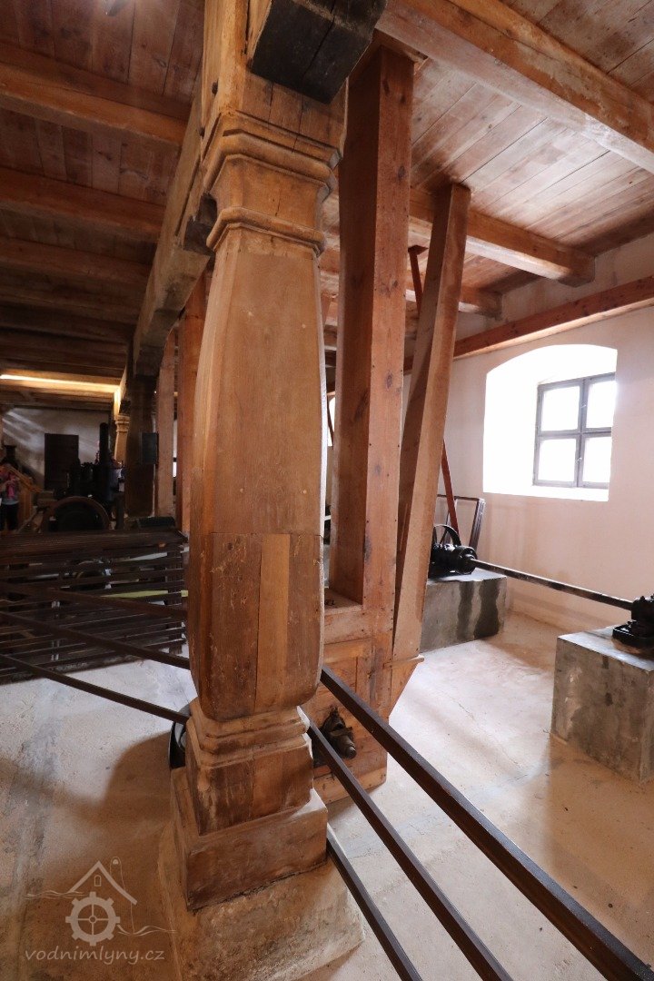 V přízemí vlevo je průjezd valeně klenutý, z něhož je přístupná stará mlýnice a přes přemostěný náhon louka za mlýnem. Mlýnice je prostor jdoucí přes dvě patra s trámovým stropem vyřezávaným (na stropním trámu vzadu proti vchodu je vyřezán nápis: FJ 1738 FS) a vším mlýnským zařízením.