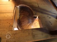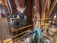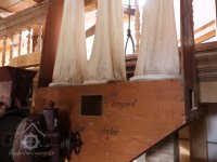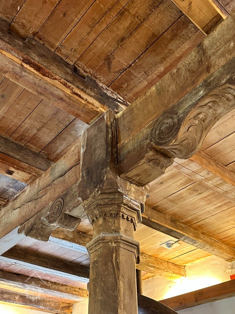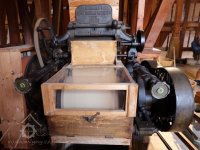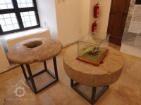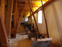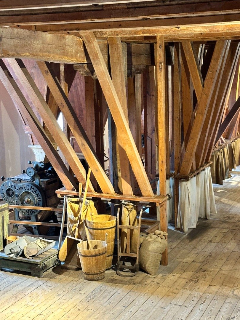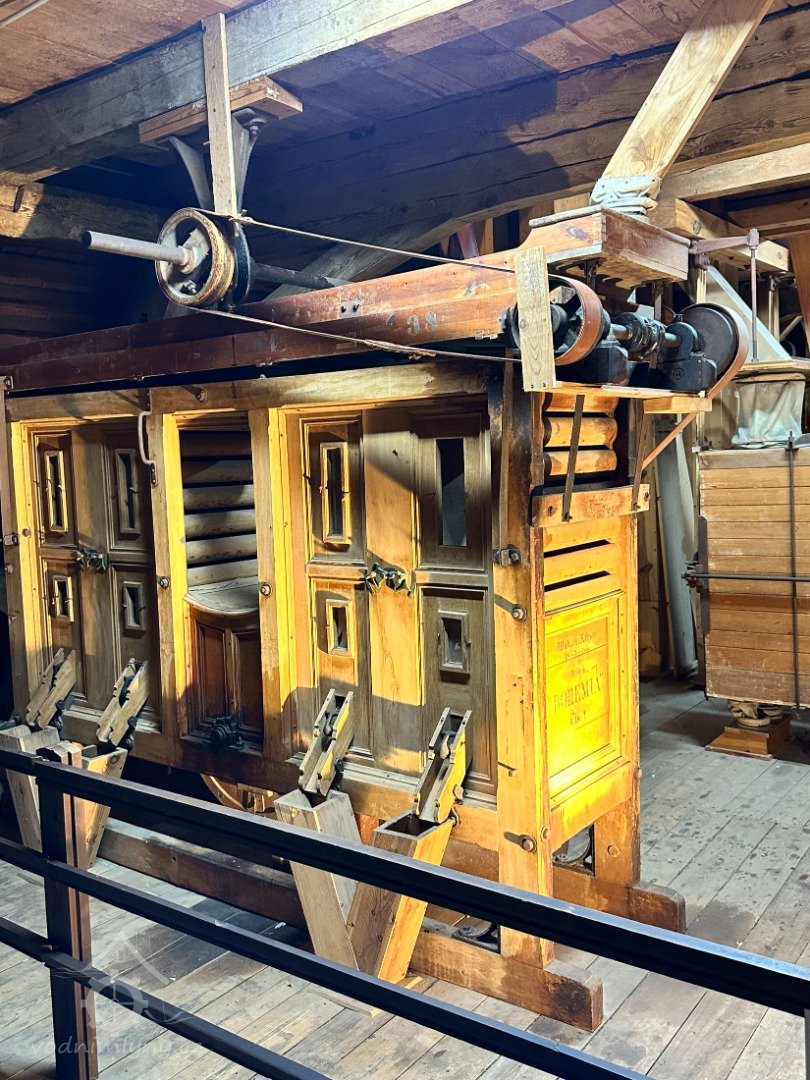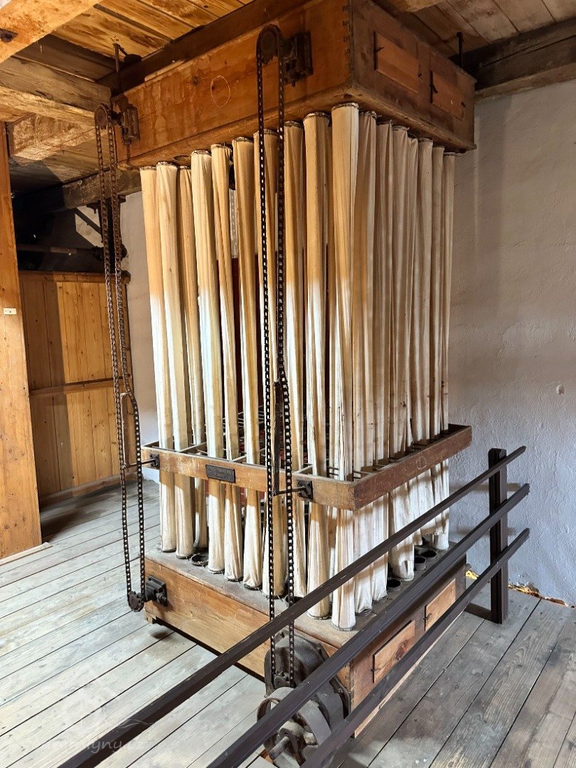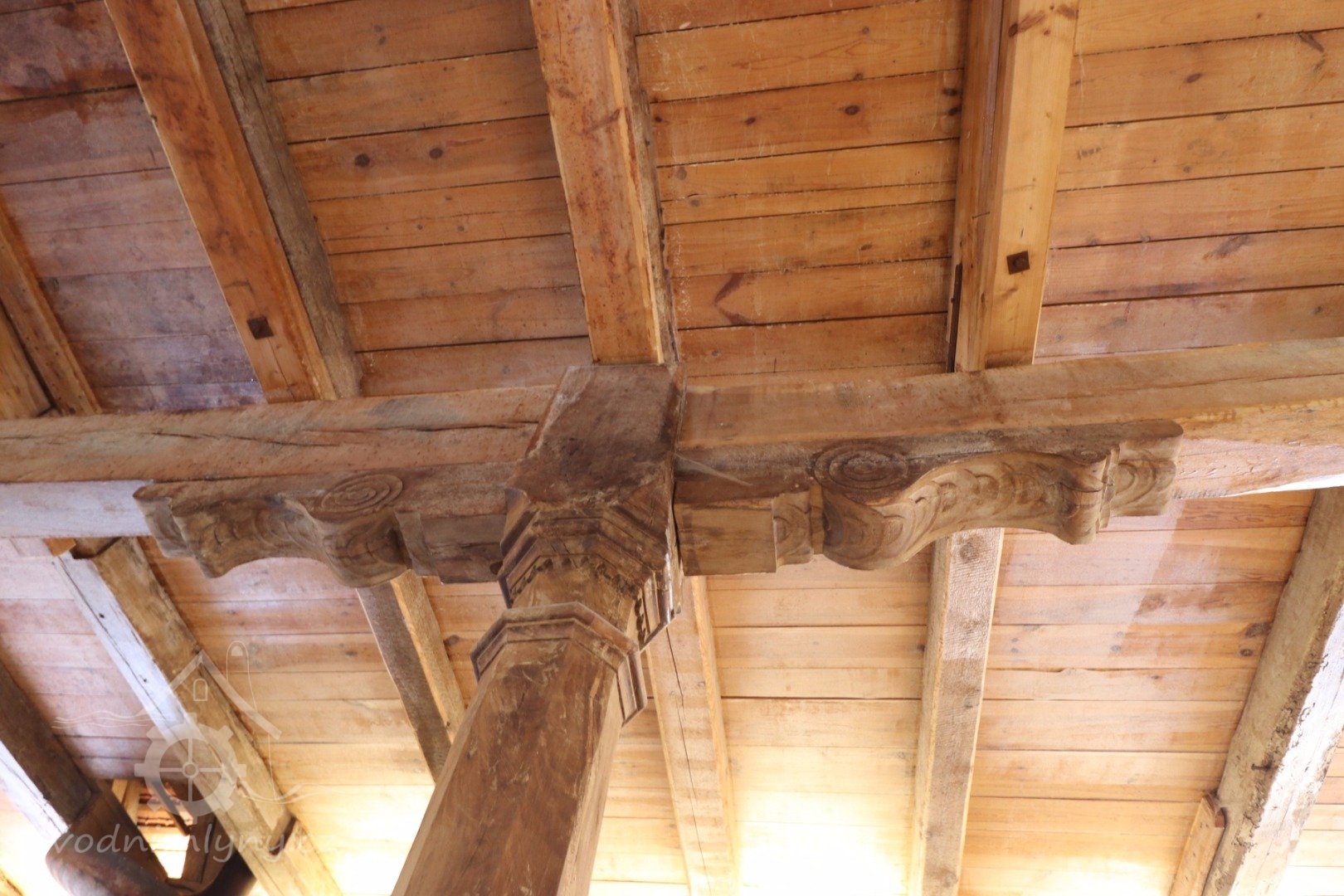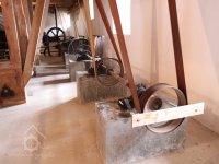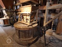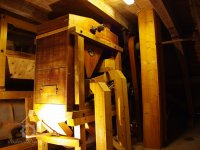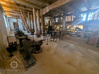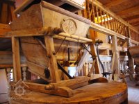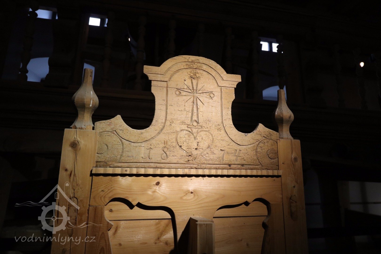 V přízemí vlevo je průjezd valeně klenutý, z něhož je přístupná stará mlýnice a přes přemostěný náhon louka za mlýnem. Mlýnice je prostor jdoucí přes dvě patra s trámovým stropem vyřezávaným (na stropním trámu vzadu proti vchodu je vyřezán nápis: FJ 1738 FS) a vším mlýnským zařízením.