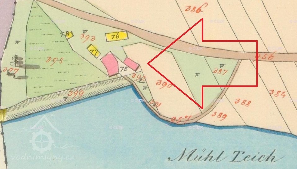 Mlýn pod rybníkem na potoce Šlapanka - někde též Jamenský potok. Mlýn zde stával již v roce 1590 a později sloužil i jako pila. V roce 1930 je již jako pila a elektrárna. Budova zrušena v 90. letech 20. stol.