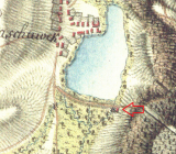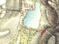 Mlýn dohledán na mapách I. vojenského mapování. (JV)