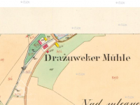 Dnes již zaniklý mlýn se zaniklým rybníkem stával jižně od obce Dražůvky. Dohledán na mapě I. vojenského mapování, v Seznamu z roku 1930 již uveden není.
